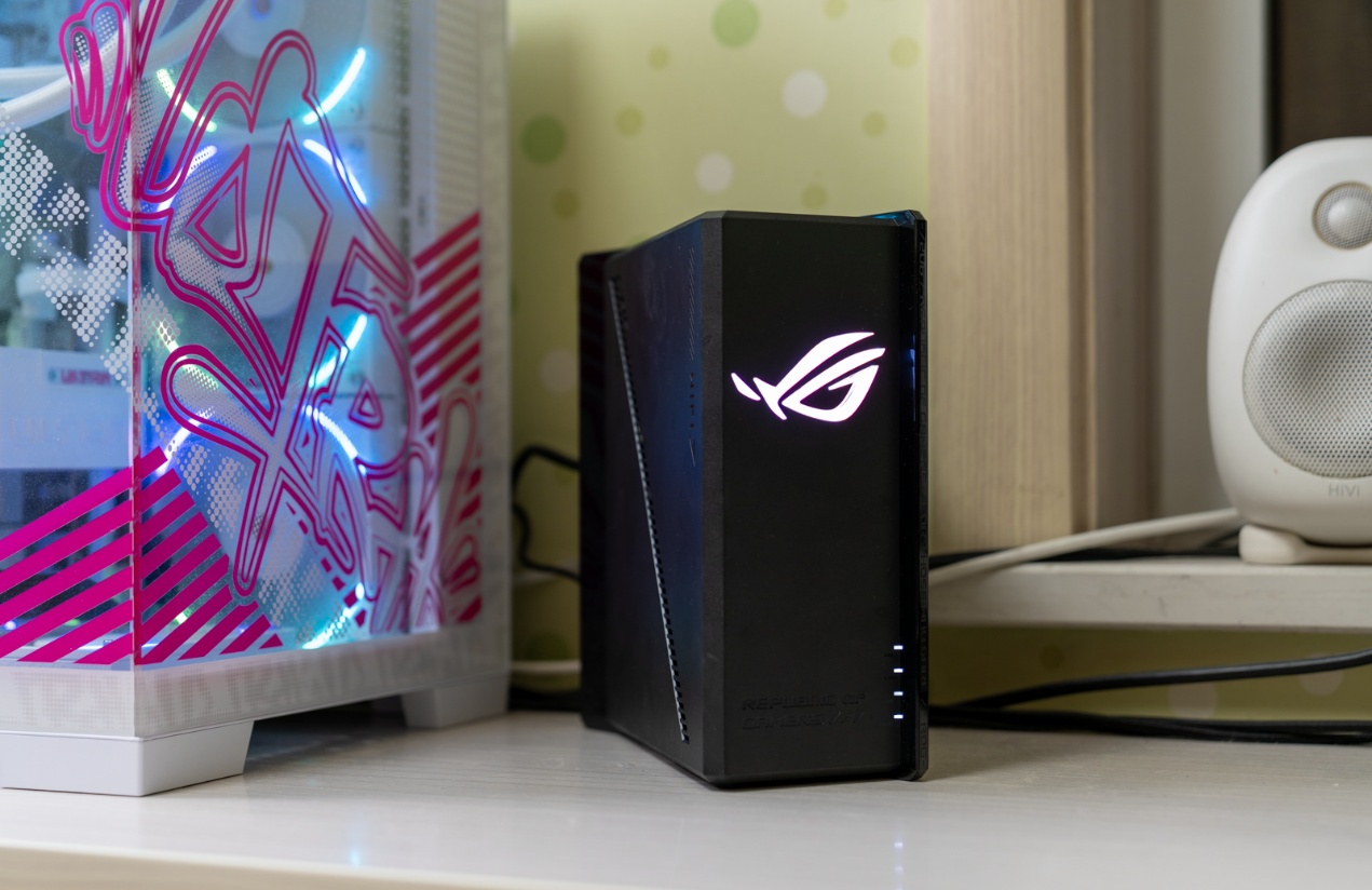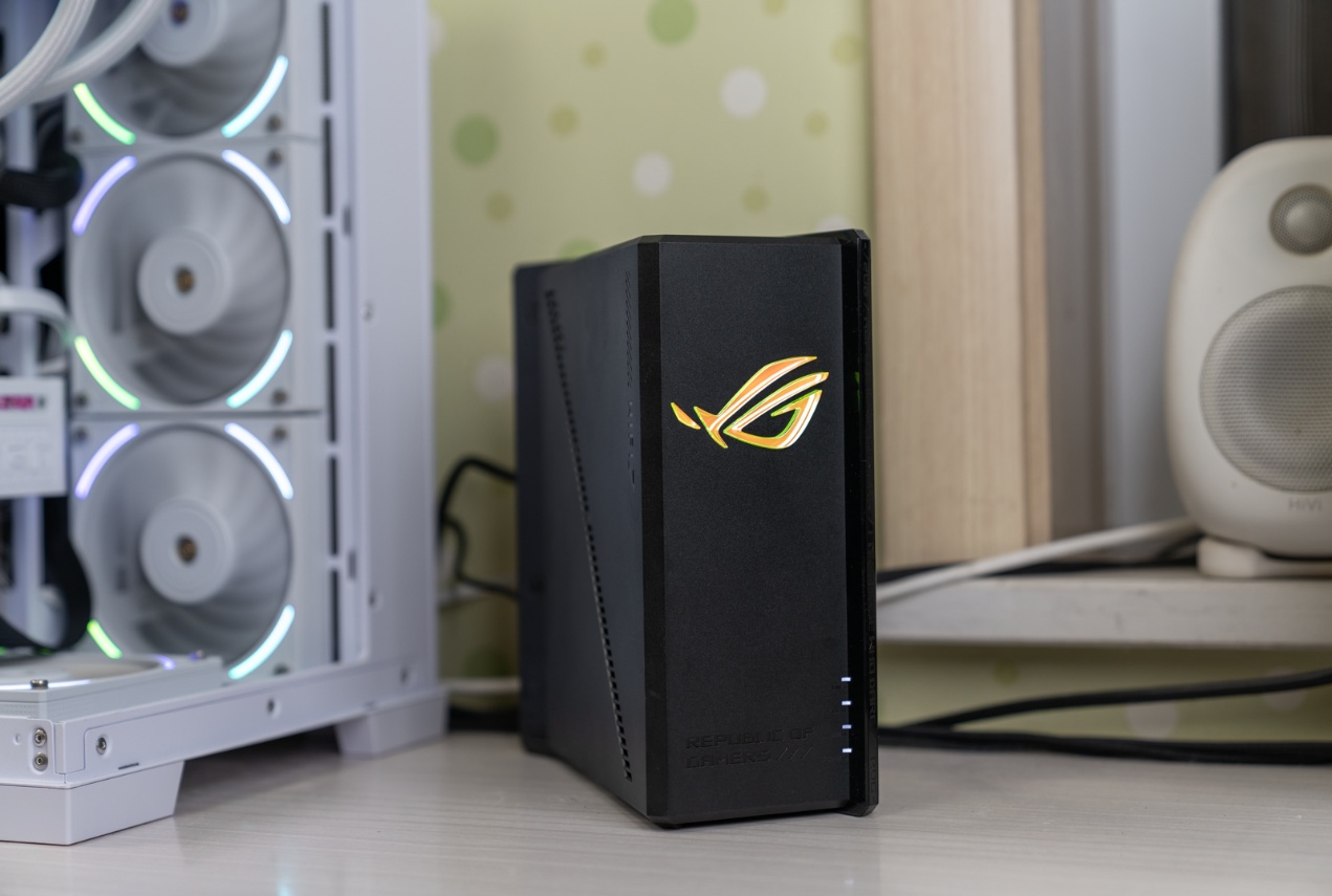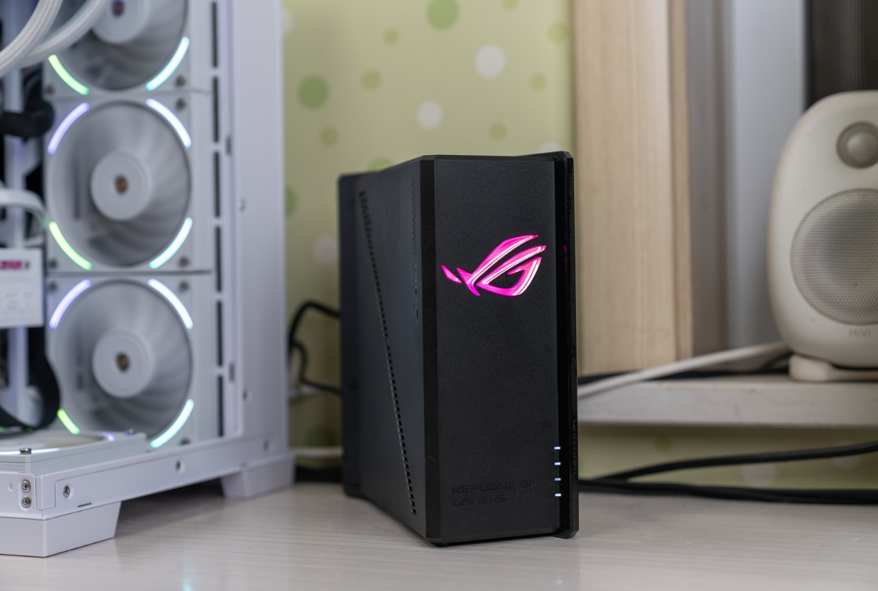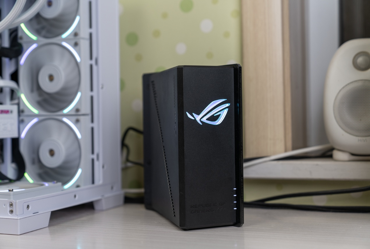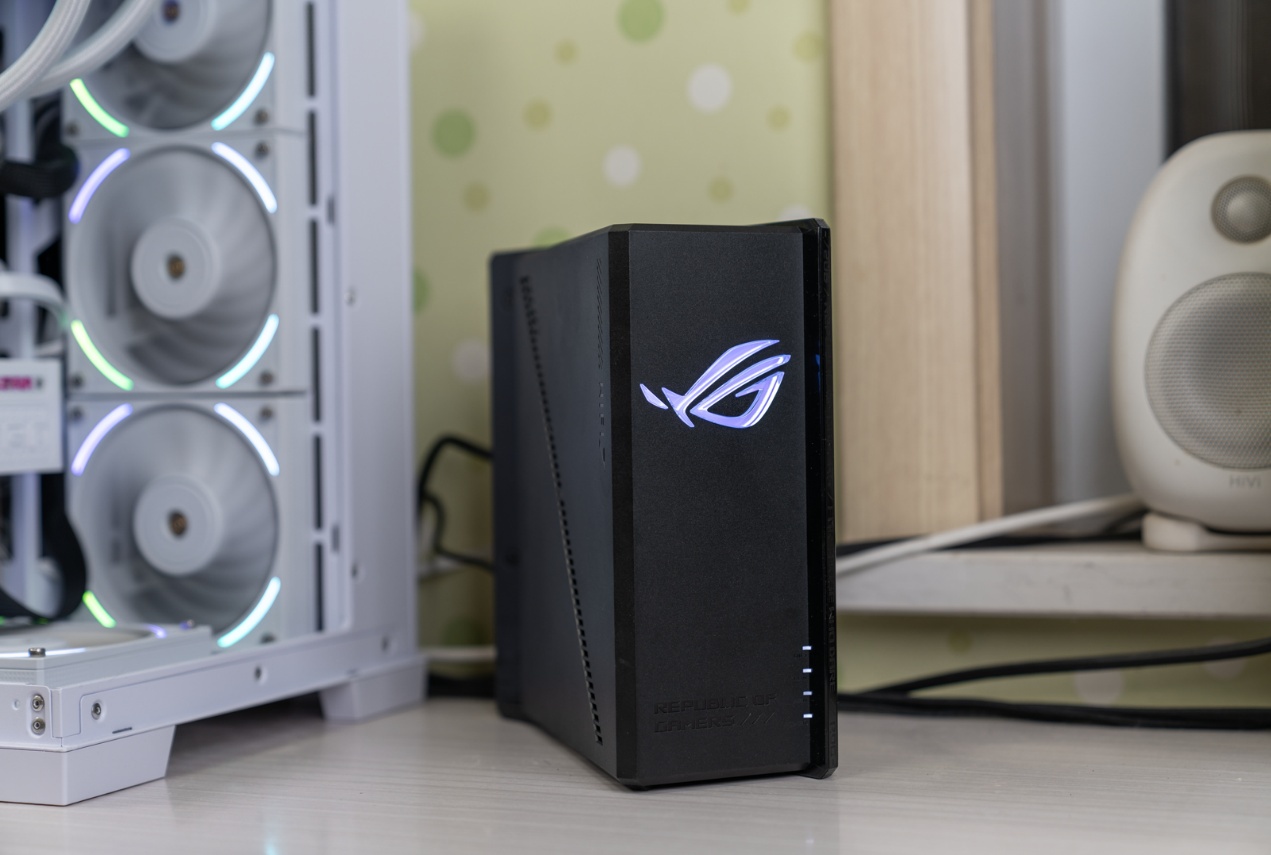 ▲华硕ROG魔盒Pro堪称电竞网络技术演进的又一里程碑。它配备了8根多角度内置天线,由10个高功率前端模块 (FEM) 供电,覆盖范围更广。搭载的4096-QAM 高阶调制、多链路聚合(MLO)、三段式电竞加速等前沿技术,与强悍的博通四核2.0GHz CPU、2GB DDR4大内存形成协同,既满足了玩家对极速稳定连接的极致追求,又为智能家居设备提供了安全可靠的网络基座,引领着下一代网络设备的发展方向。外观设计