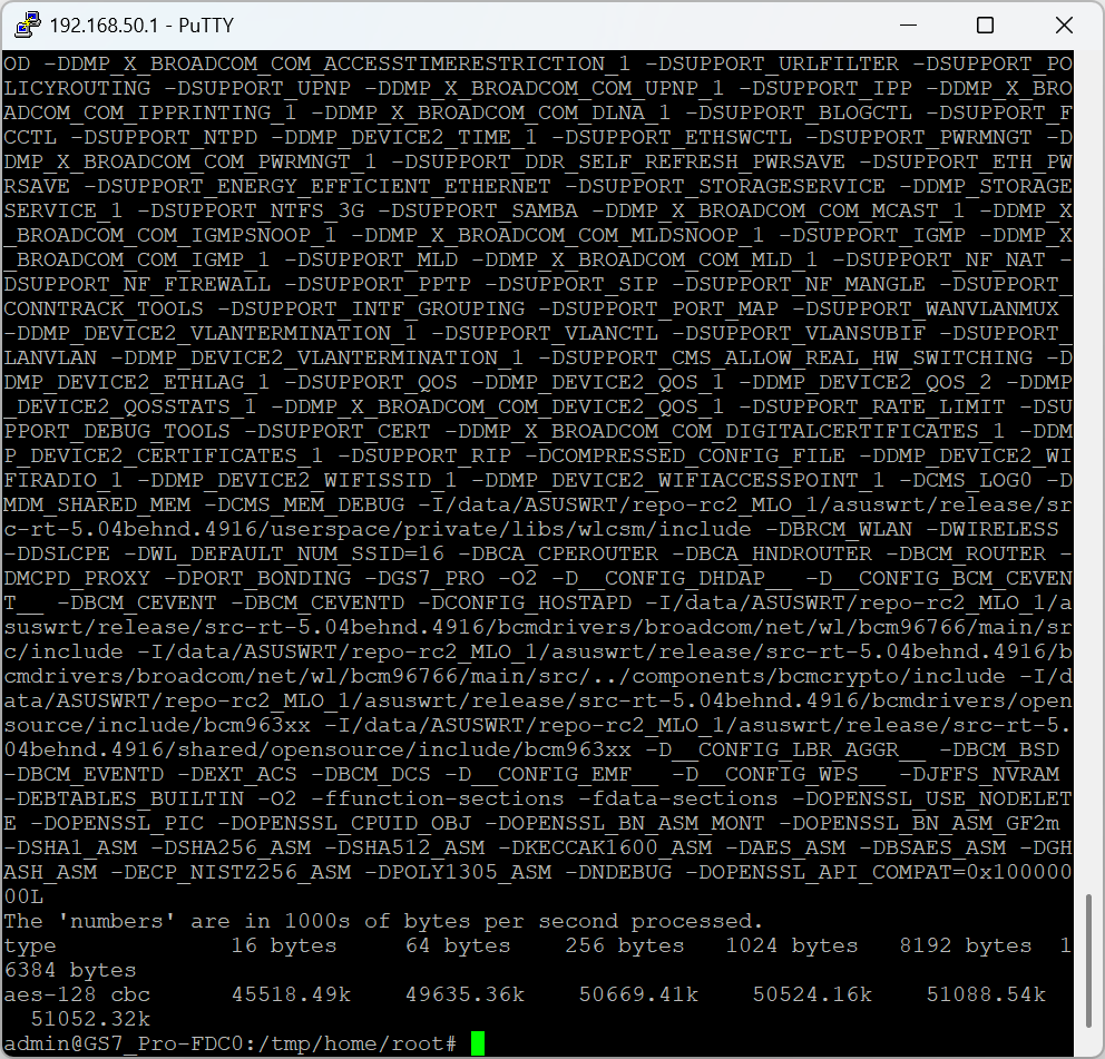 - 采用博通四核2.0GHz CPU方案,配合2GB DDR4大内存,在dhrystone测试中获 12833.91 DMIPS分数,整数运算与多任务处理能力强劲,可轻松应对多设备同时高速运行、大流量数据传输等场景。其加解密性能同样出色,单线程 openssl aes-128-cbc 测试得分超 50000k,4线程达194991.45k,依赖通用计算能力即可满足高负载下的数据安全传输需求。
