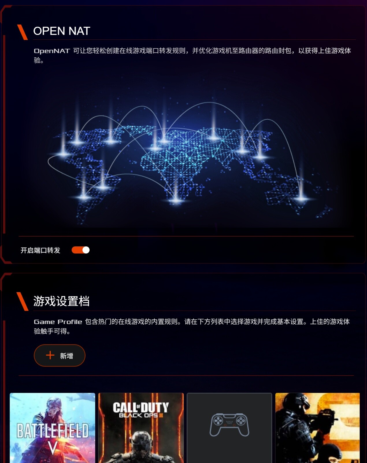 ▲通过专属控制界面可对正面ROG Logo进行RGB光效定制,充分满足个性化电竞氛围营造需求。 ▲支持AiMesh 2.0随心组网技术,可与兼容的华硕路由器构建无缝漫游网络。管理界面提供LED总控开关,一键关闭所有I/O接口状态灯与ROG信仰灯效,打造纯粹无光污染的竞技环境。 ▲IOT网络可以在智能家居中,通过连接家中的各种设备,如智能灯泡、智能插座、智能门锁等,可以实现远程控制、自动化调节和能源管理,提高家居的舒适度和能源利用效率。由于部分智能家居的WiFi协议比较老旧,启用华硕的IoT网络能在使用上更稳定且能集中管理设备。 ▲深度整合网易UU加速器,实现PC/主机/移动端三位一体加速方案。智能识别PS5/Xbox/Switch等主流游戏平台,自动匹配最优加速节点,有效降低《APEX》《CS:GO》等竞技游戏的端到端延迟至20ms以下。 ▲游戏加速支持对选中IP的设备或者手机进行加速,当检测到游戏运行时,会自动触发Turbo模式,优先分配更多的带宽资源,确保游戏画面传输零丢包。 ▲Open NAT智能端口转发功能内置超过20000款游戏协议库,自动配置UPnP映射规则,彻底解决Xbox Live/Nintendo Online等平台的NAT类型限制问题。 ▲华硕ROG魔盒Pro配备博通高性能4核心2.0GHz CPU,RAM容量为DDR4 2048MB,配备8个2.5GbE端口和一个USB3.0接口,确保了强大的处理能力和多设备连接能力。 ▲ROG魔盒Pro具备三个WiFi频段,由于中国区限制,只有5G1网络支持160MHz频宽,需要使用36-64频道,可以为用户提供高速稳定的无线连接。- 开启 TX Burst 功能:TX Burst功能启用后,设备可在短时间内连续发送数据,提升数据传输效率,常用于高吞吐量场景,如大文件快速传输 。不过,在复杂干扰环境下,可能因连续发送增加冲突概率,需结合实际网络情况权衡。