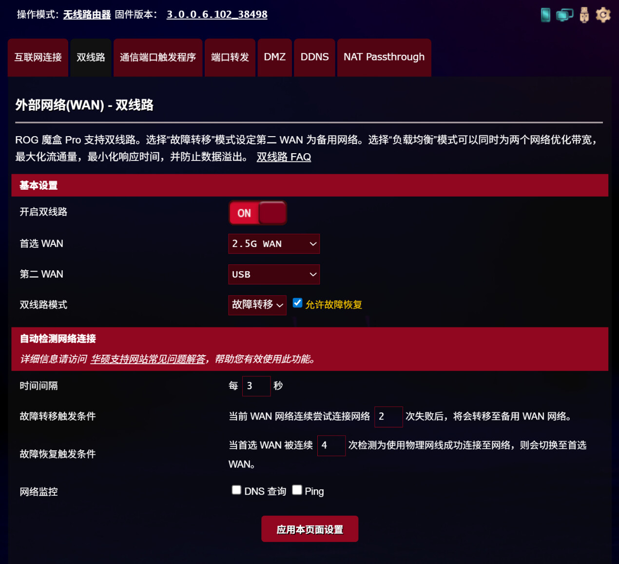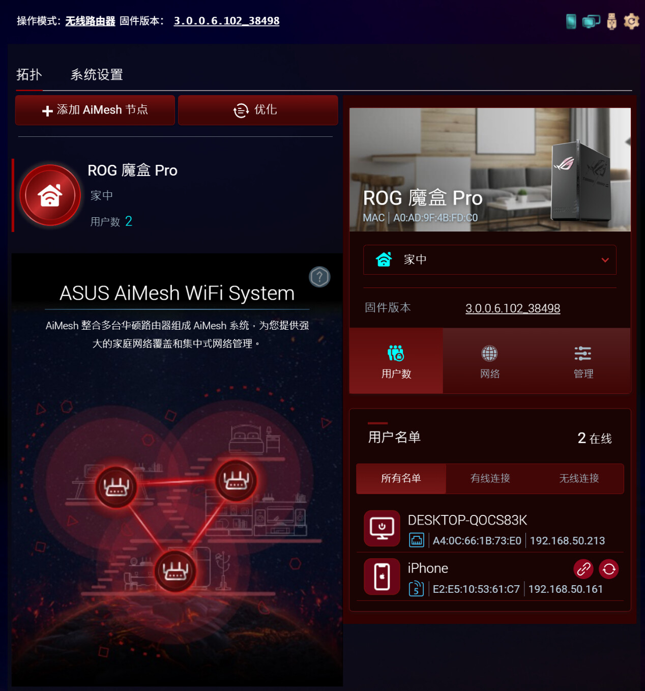 说明:ROG魔盒Pro使用3.0.0.6.102_38498固件,路由器开启WPA3加密