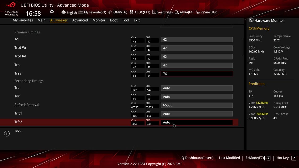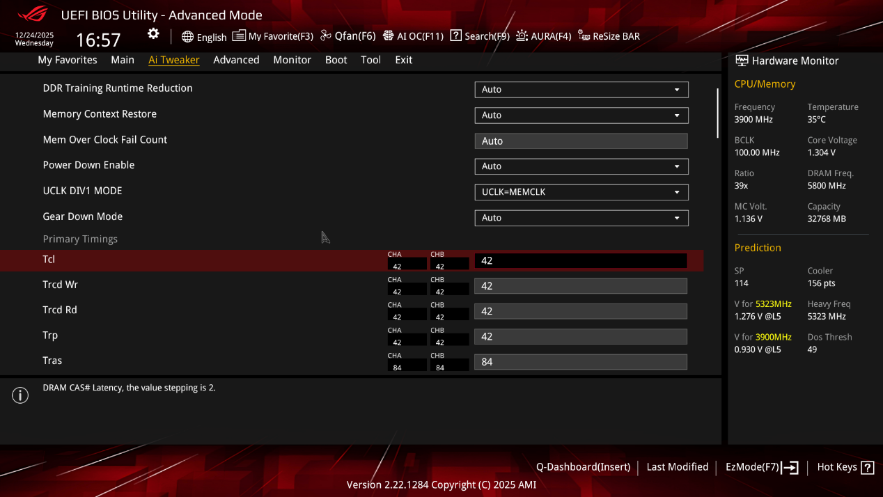 ▲在DRAM Timing Control 页面中,用户可以对内存时序进行精细调整。华硕将之前在菜单底部的UCLK选项放在了最上方。对于AMD平台,当内存频率超过6200MHz后,就会触发内存分频机制。选择“UCLK=MEMCLK”模式,可以使UCLK与内存时钟保持一致,从而优化性能,尤其是在高频率内存运行时,能够有效提升内存带宽和稳定性。如果选择“UCLK=MEMCLK/2”模式,则UCLK会以内存时钟的一半频率运行。