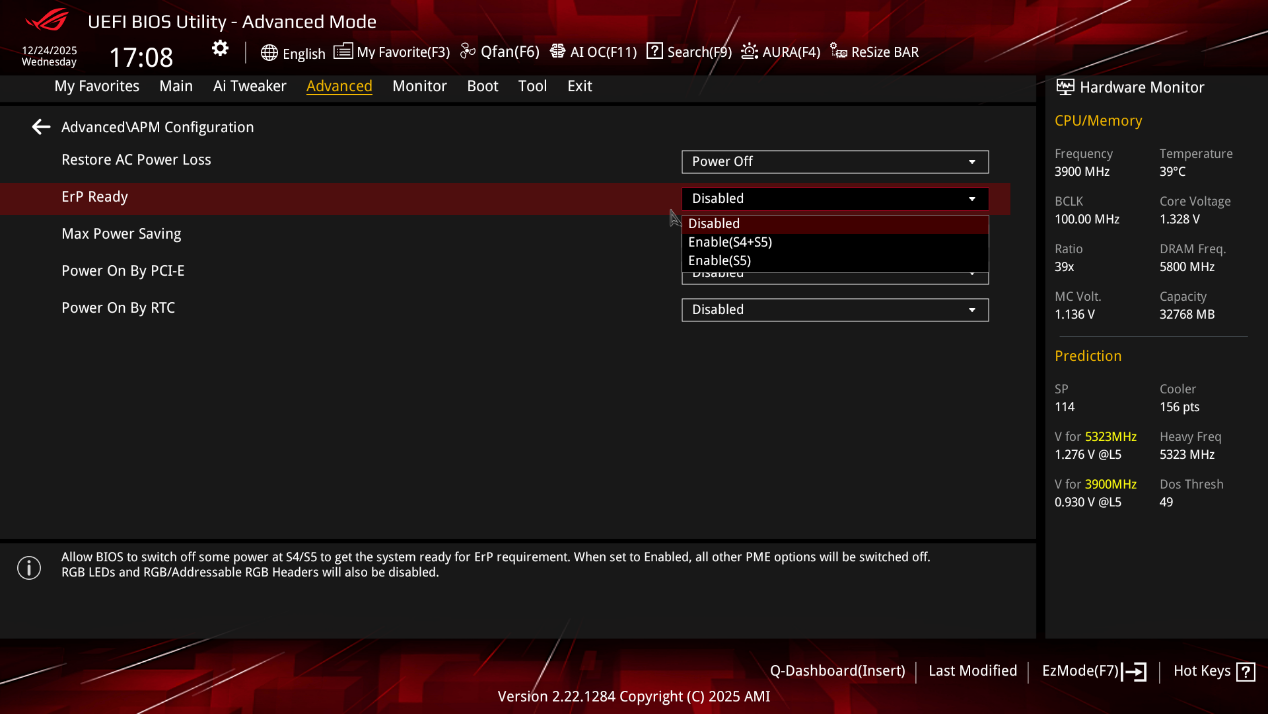 ▲开启Erp Ready,启用S4 + S5可以在关机后,让系统进入深度节能状态,大幅降低整机的待机功耗,像 USB 接口等外设也会停止供电,有助于节省电能。