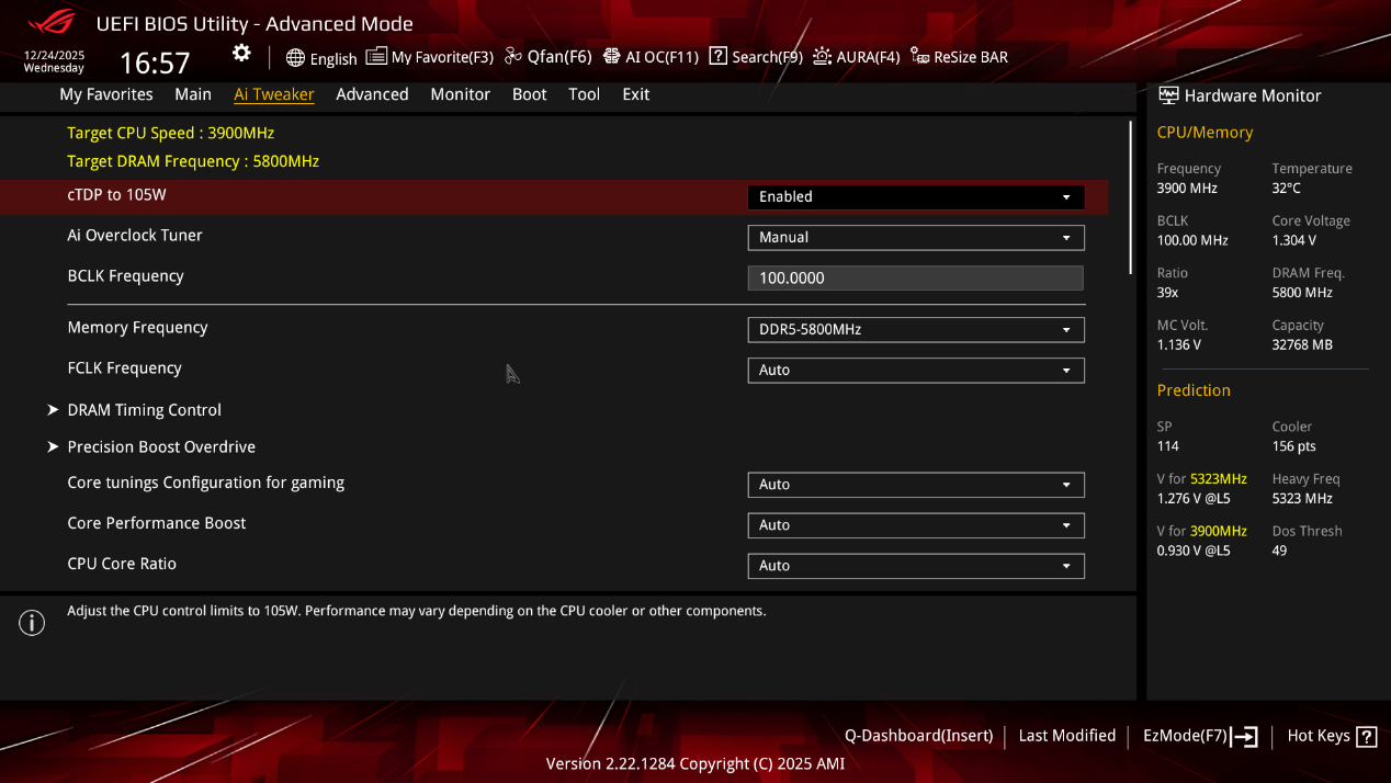 ▲Ai Tweaker主界面,提供了丰富多样且专业的性能相关调节选项,像CPU 频率、内存频率这类核心硬件的频率参数,还有Precision Boost Overdrive (PBO)等增益选项,以及与之对应的电压、功耗设定等条目,能让玩家根据自身需求,从基础到进阶,全方位对系统性能进行精细调校。