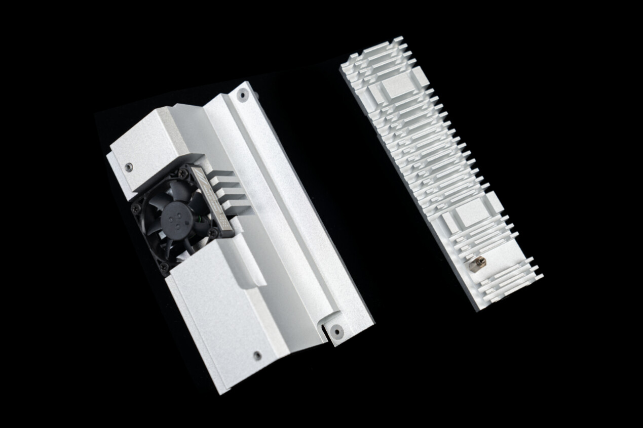 ▲VRM供电模块装甲与芯片组散热片,通体采用银色合金材质打造,兼顾主题风格与导热性能。VRM散热装甲上配备4cm散热风扇,在高负载时可以主动带走VRM区域的热量。芯片组散热装甲表面设计有复合沟槽结构,在 ITX 主板紧凑的机箱空间内,能有效增大散热面积。