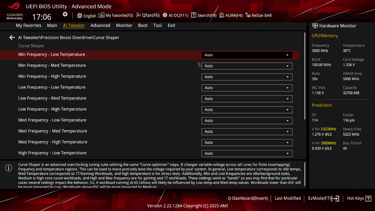 ▲Curve Shaper页面可以针对不同温度区间与性能场景,对CPU核心的频率进行精细化调控。像 “Min Frequency - Low Temperature”、“High Frequency - Low Temperature” 等诸多选项,能让玩家依据不同温度条件,去设定对应的低\中\高频率等参数,从而在性能释放与功耗、温度控制之间找到更契合的平衡点,实现更智能、更高效的CPU性能管理。