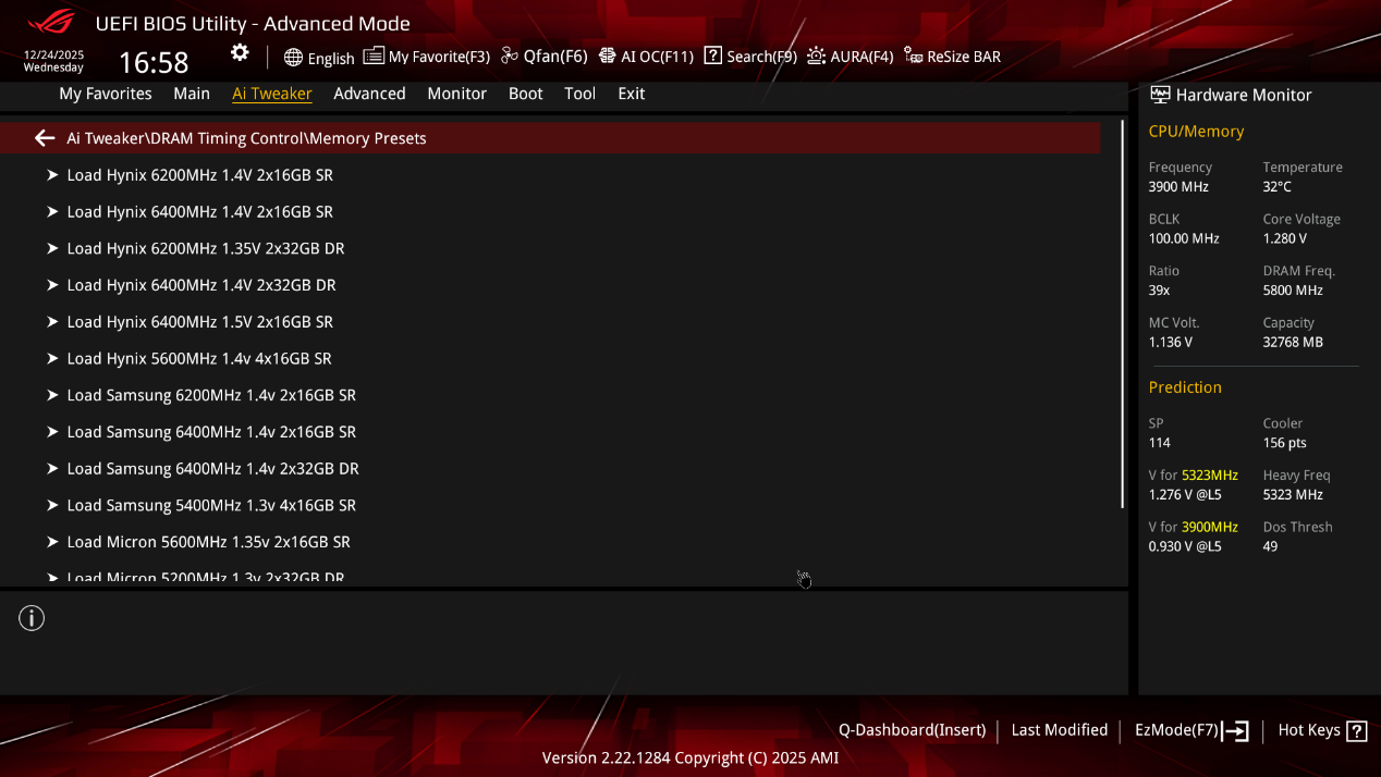 ▲主板内置了不少像海力士、三星、镁光等品牌内存的超频文件,方便玩家直接调用。不过,对于48G×2这类大容量内存的超频文件,目前还没有收录。