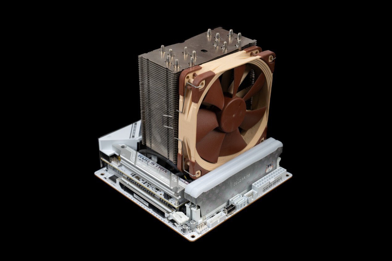 ▲选用 U12A 此类避让内存的风冷散热器可以完美适配ROG B850迷你吹雪的 ITX 布局,避免与高马甲内存发生安装冲突。