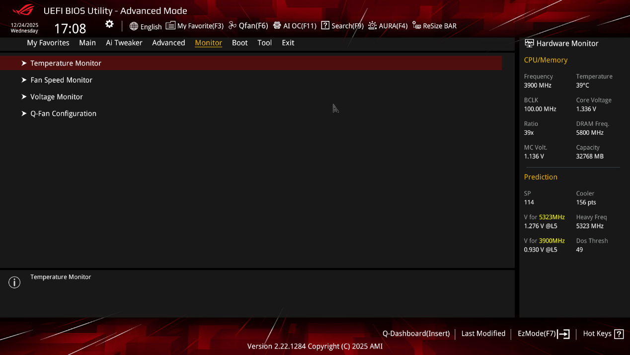 ▲Monitor页面聚焦于电脑的健康状态监测,能够为用户呈现包括温度、风扇转速以及电压等在内的关键信息,方便用户及时了解电脑硬件的运行状况。