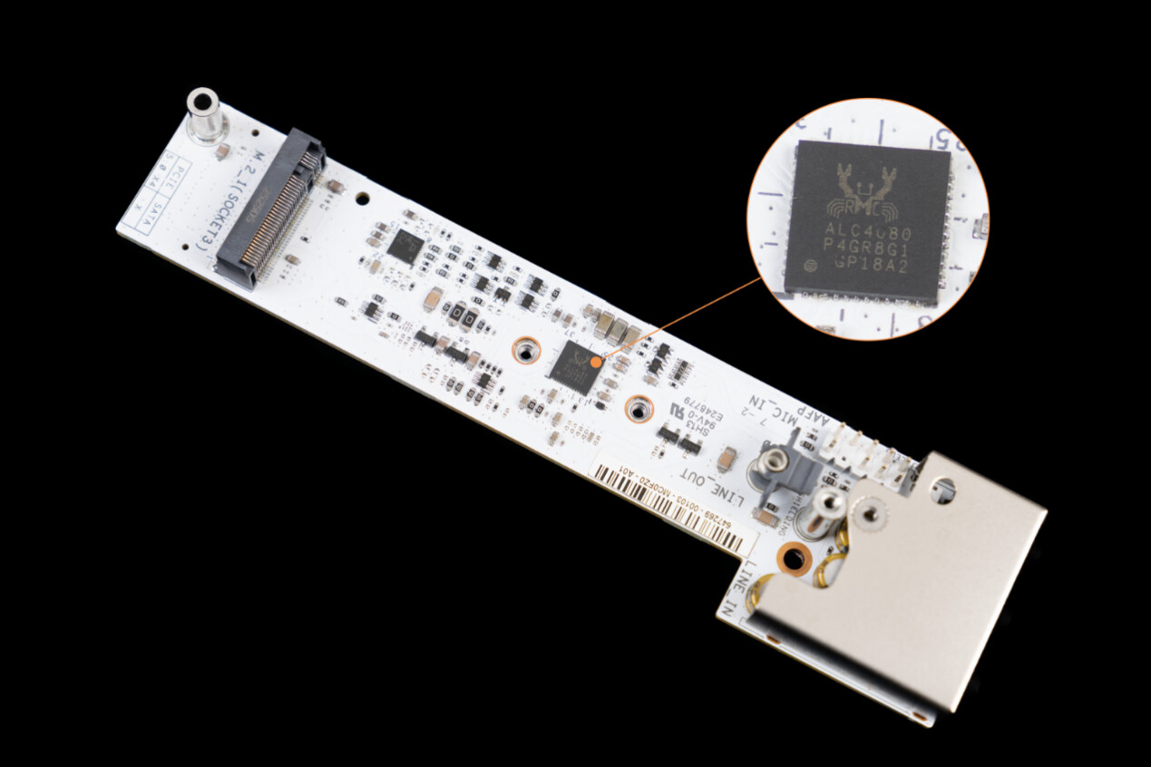 ▲音频部分芯片采用的是 ALC4080 音频芯片,可在所有通道上实现高达 32 位/384 kHz 的高分辨率播放。同时,还配备了SAVITECH SV3H712放大器和4颗高品质音频电容,前者能增强音频信号的驱动能力,让耳机、音箱等音频设备获得更强劲的推力,呈现出更饱满的声音;后者则有助于滤除电源噪声,稳定音频电路的供电,从硬件层面为高保真音频输出提供有力支持。