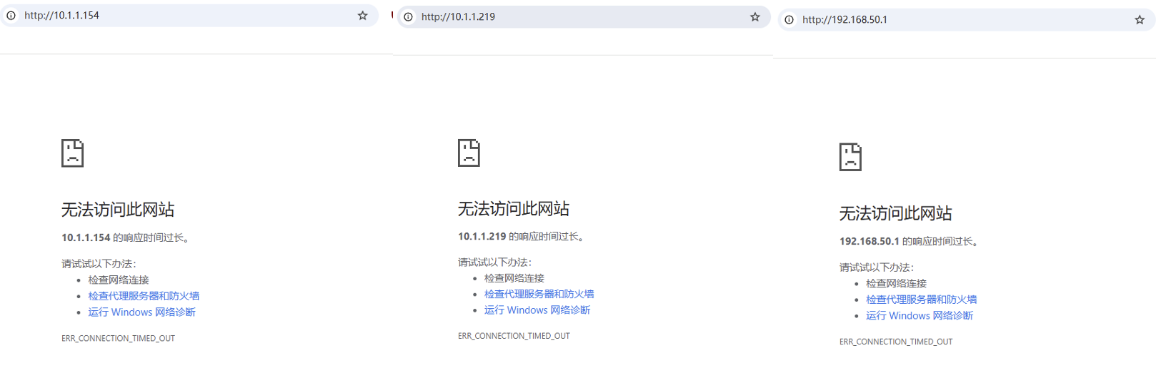 如上图所示,均不能通过有线设备进行访问(连接在华硕GT6的有线设备可以通过192.168.50.1访问到GT6)。