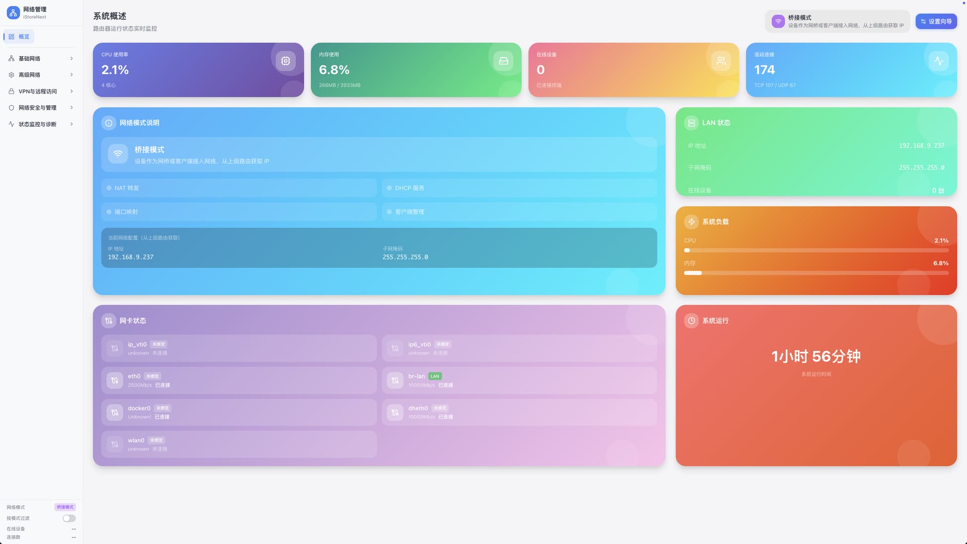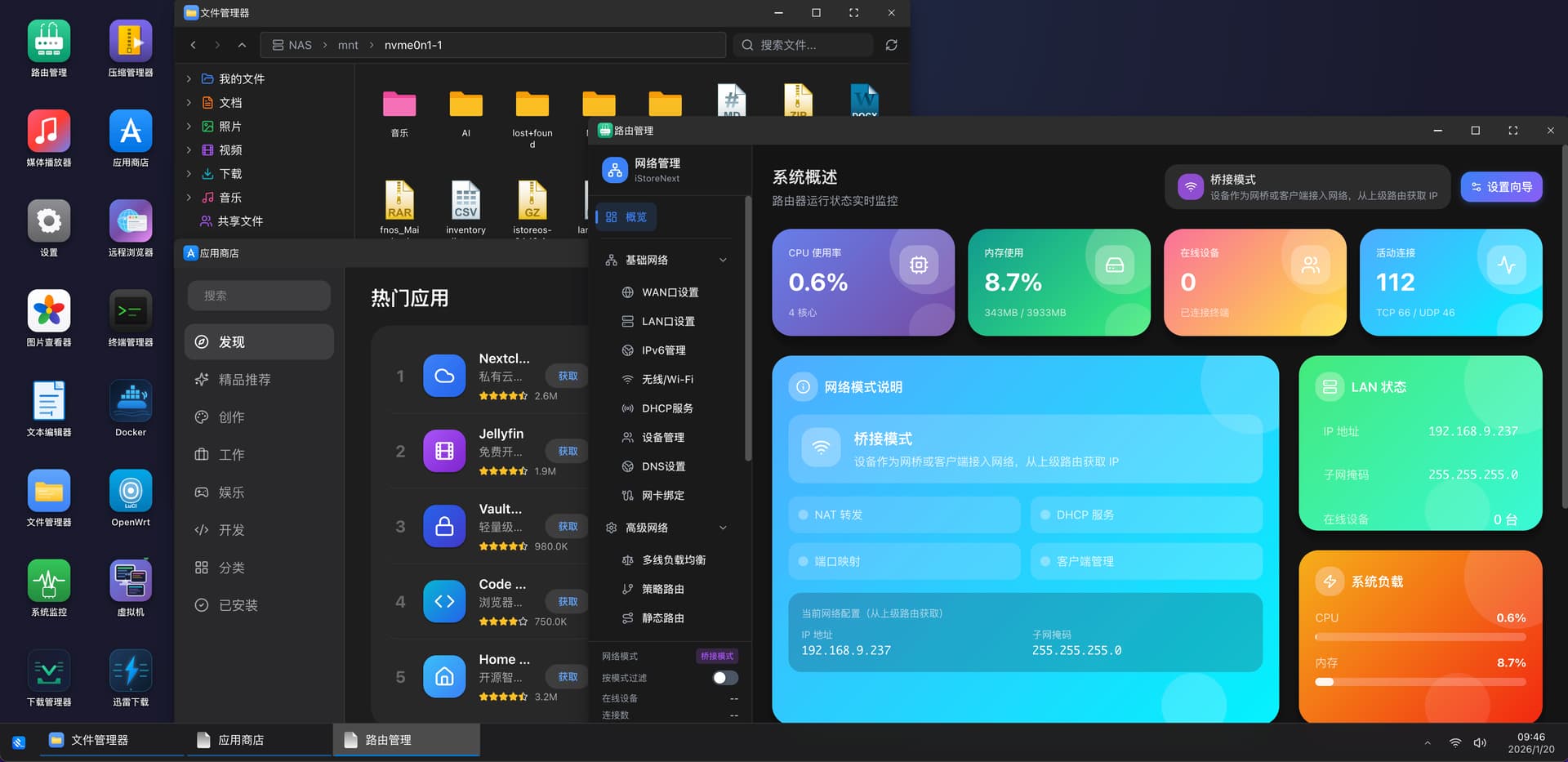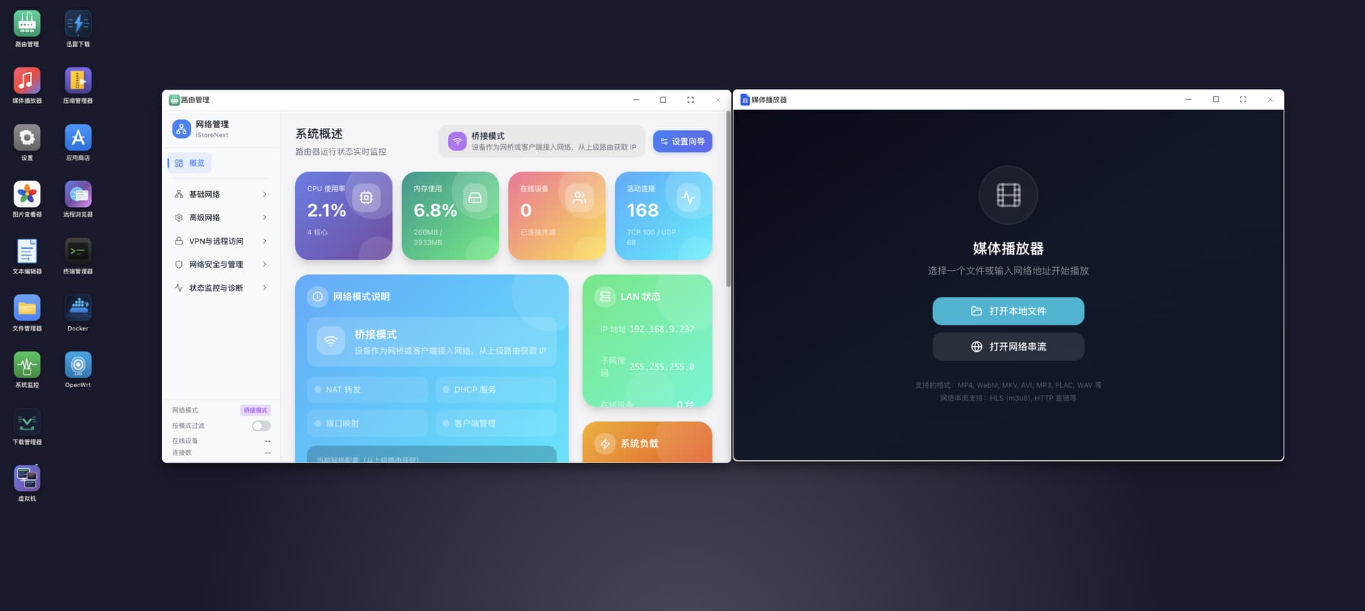 - 这是一个融合「路由 + 存储 + 应用 + 运维」的一体化系统,采用全新的桌面式交互设计,同时兼顾新手易用性与专业玩家的深度配置需求。