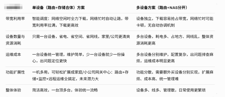 网络空闲时偷偷多下点,网络忙时自动让道,带宽利用率拉满;只用一台设备,省电、省空间、省网线;运维成本直线下降(少一台设备少一份操心)。