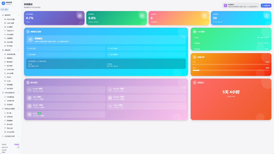 老实说,传统路由器那种左边菜单、右边内容的布局,太死板,交互体验被框得死死的。