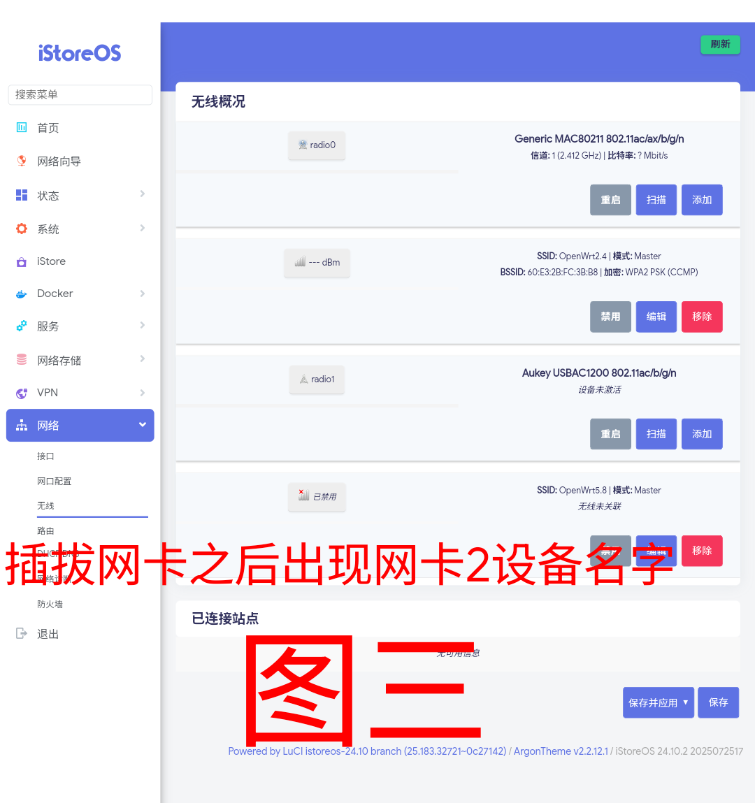 仅能通过手动拔插USB网卡,才可出现图三