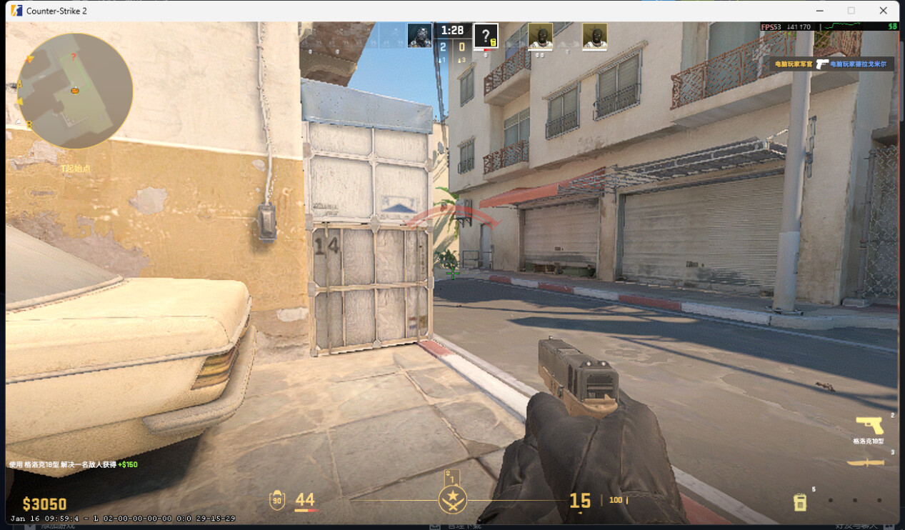 ▲《CS2》,720P最低画质(53FPS)。从体验来看,这个帧率足以支撑单人人机休闲游玩,操作响应无明显卡顿;但若是进入多人联网竞技模式,53FPS的流畅度(且是最低画质)既达不到竞技场景所需的高帧率要求,画面观感也会因画质压缩打折扣,体验会比较吃力。