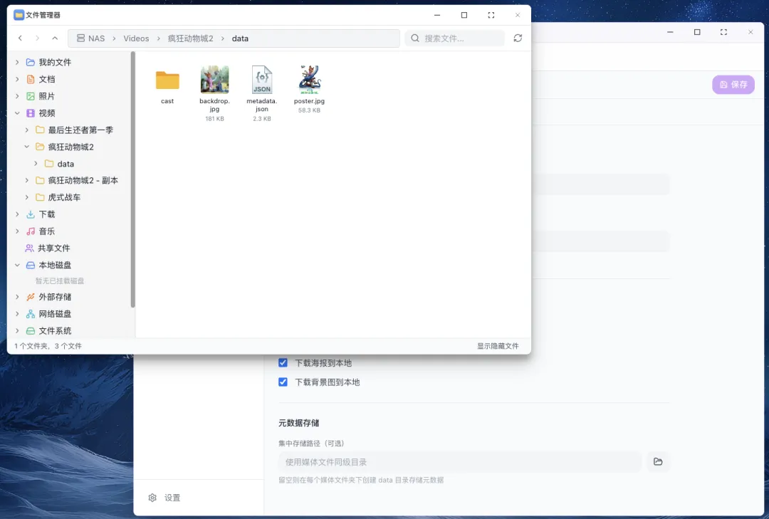 **本地化存储架构:**所有刮削的元数据均直接存储在本地 NAS 中,构建专属的私人影视数据库,彻底摆脱网络依赖和第三方服务停运风险。