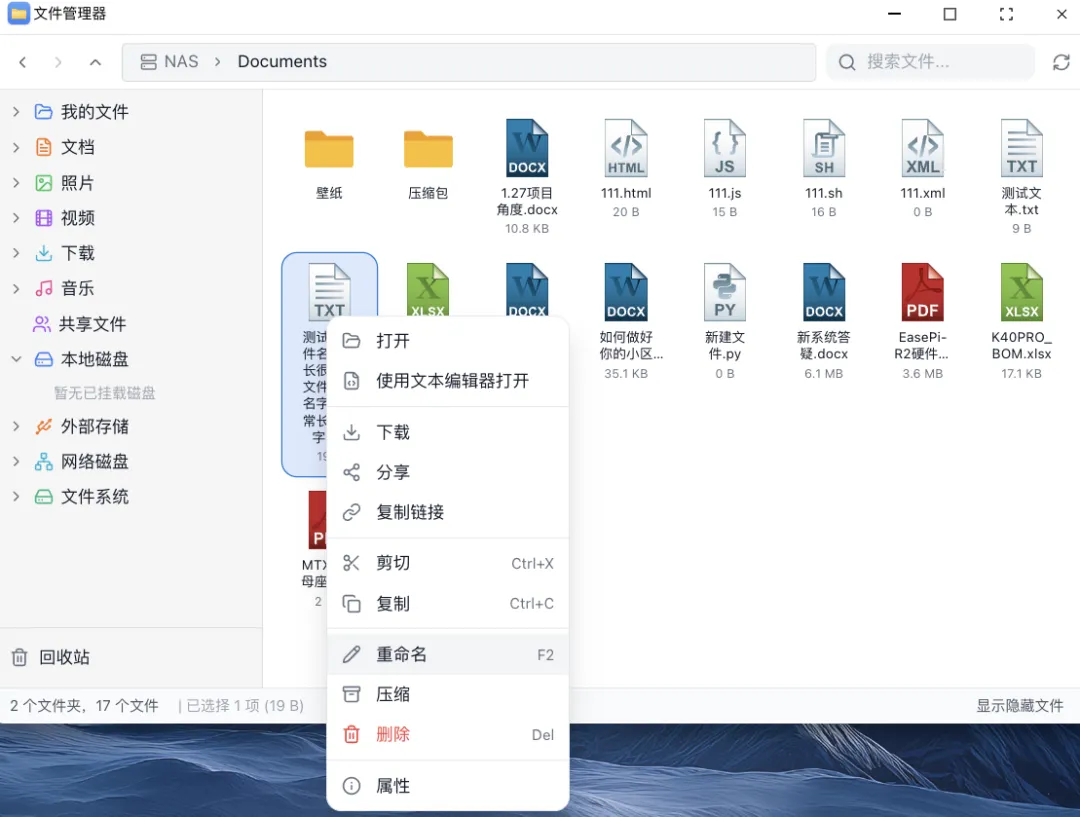 单击文件时,系统会显示完整文件名,避免了因文件名过长导致的显示不全问题。