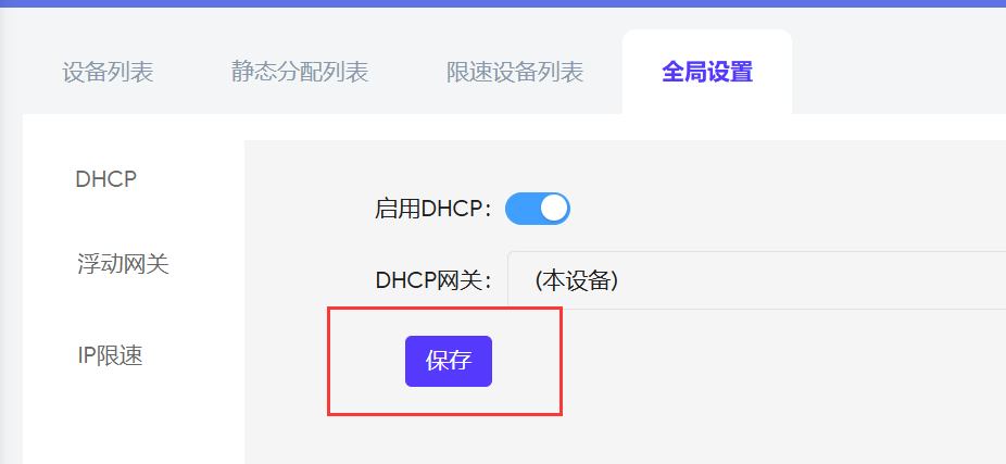 设备管理全局设置里DHCP保存无效