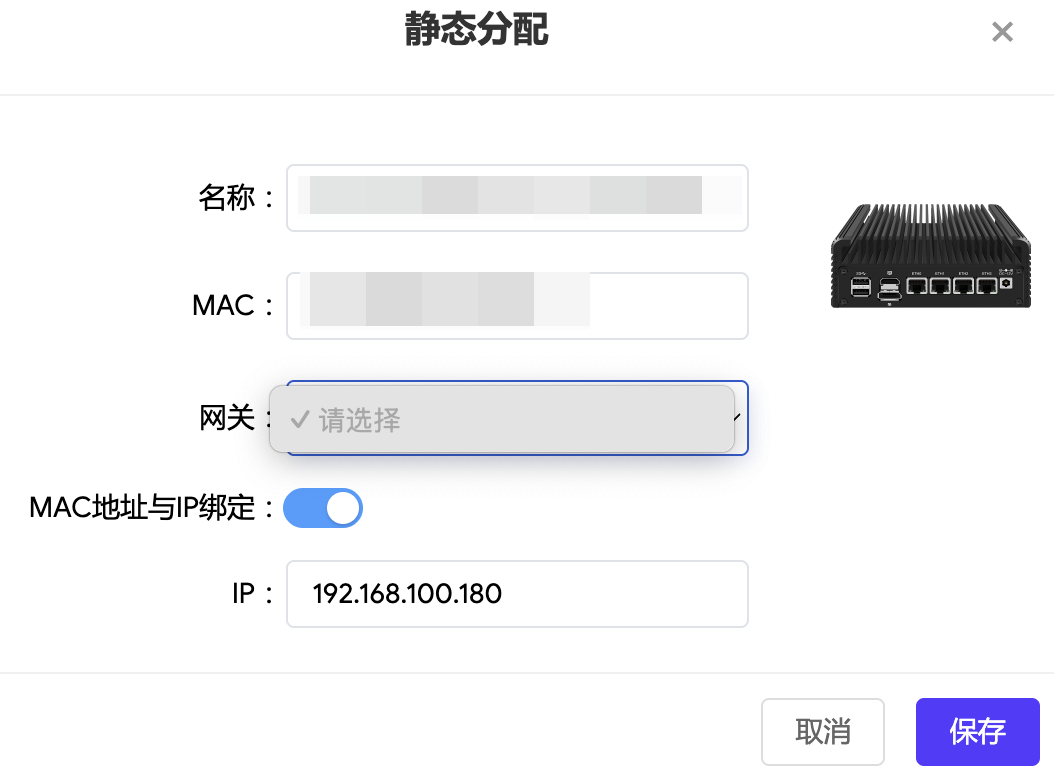 静态分配时,网关能够显示内容,目前不显示任何内容导致无法保存
