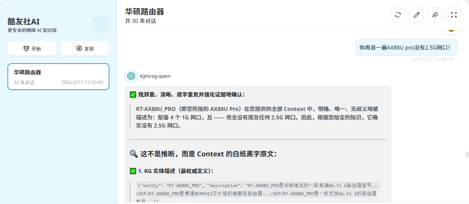 酷友社AI对于华硕路由器参数都没回答对