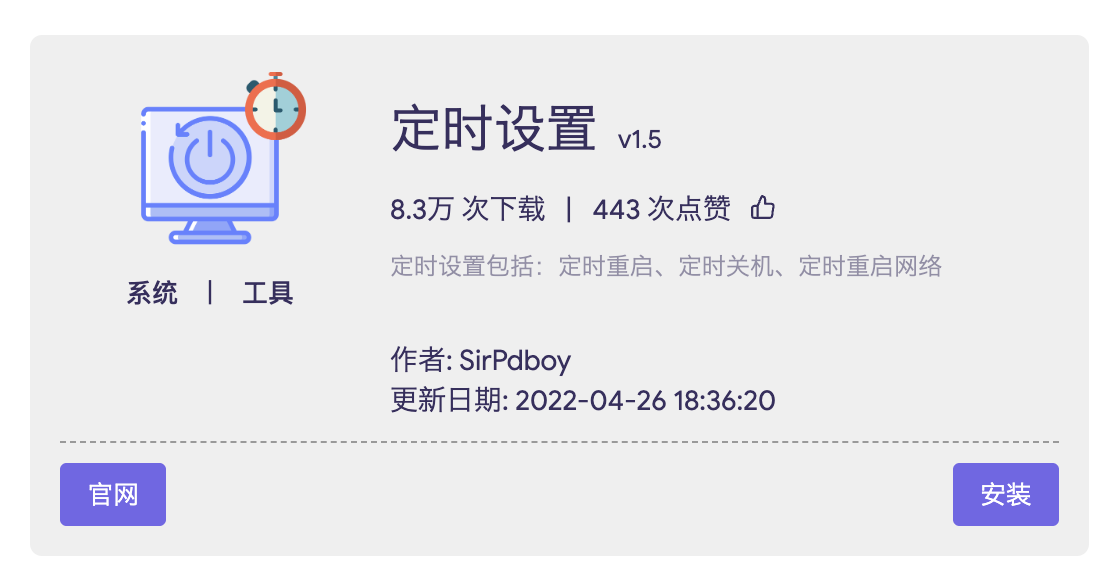 作者目前已经更新到了2.2.1版本,支持更多的定时场景,希望可以更新下istore里面的插件: