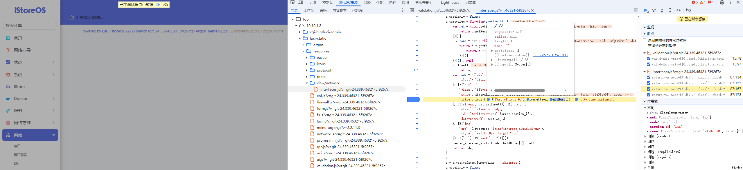 打开部分菜单会出现_(…).format is not a function异常导致页面空白,使用页面debug调试一步步放行后有概率正常,下面是一些debug截图信息