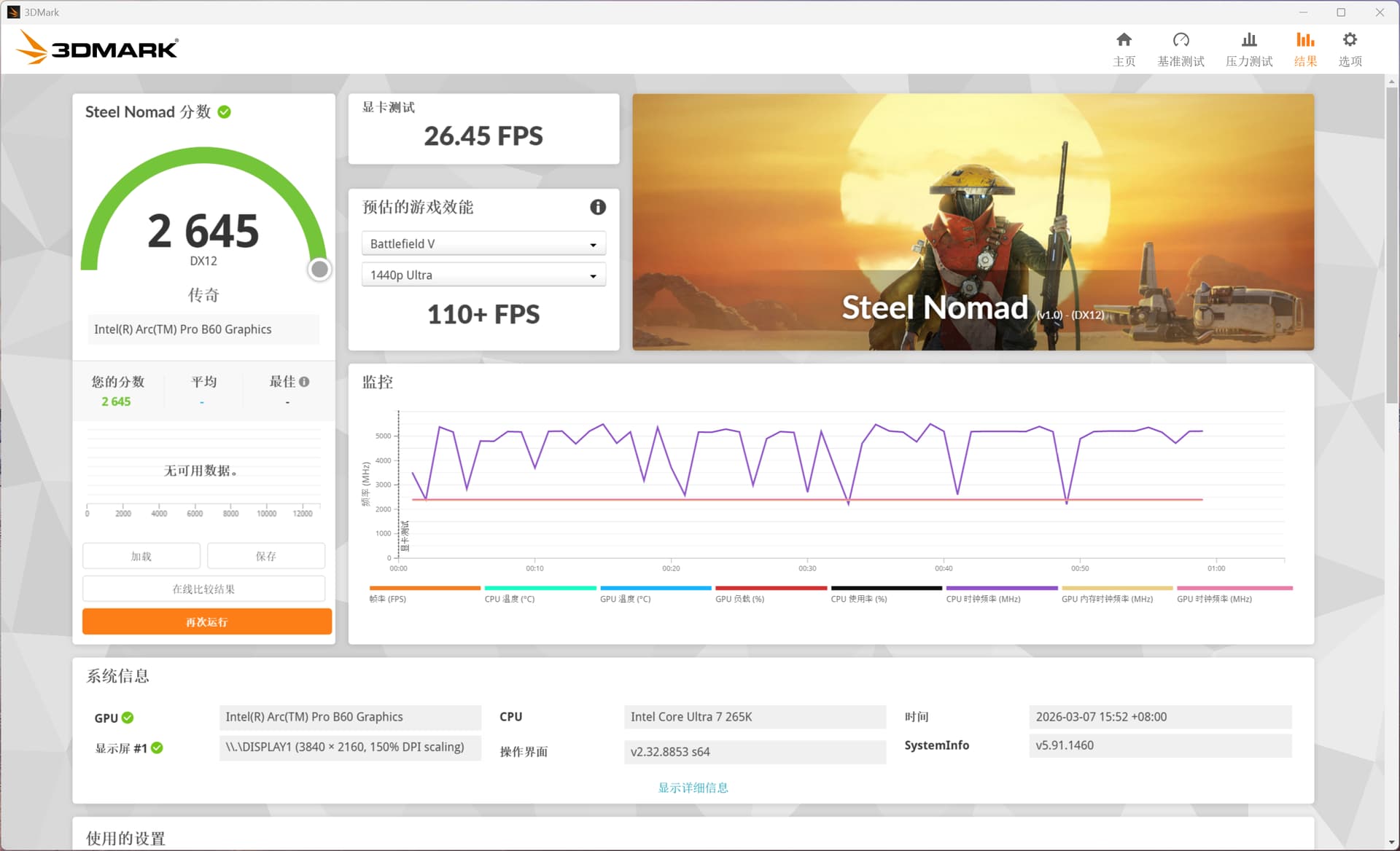 在基准测试中,Arc Pro B60在2K分辨率下的3DMARK TimeSpy显卡得分为13113分,这款测试软件是目前衡量显卡DX12游戏性能的行业标杆,能够直观反映显卡的通用3D渲染能力;而针对4K光追性能的Steel Nomad测试中,Arc Pro B60取得了2645分的成绩,能够满足入门级的光追游戏与3D渲染需求。