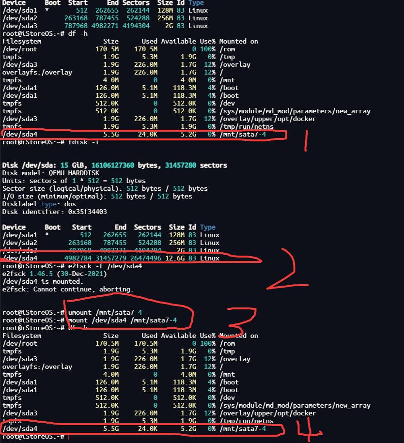 我在istoreos里面的把5G的分区删掉,再新建了一个12G的新分区,然后在挂载和磁盘管理里面挂载,sda4的空间却总是只有5G,其它空间不见了?