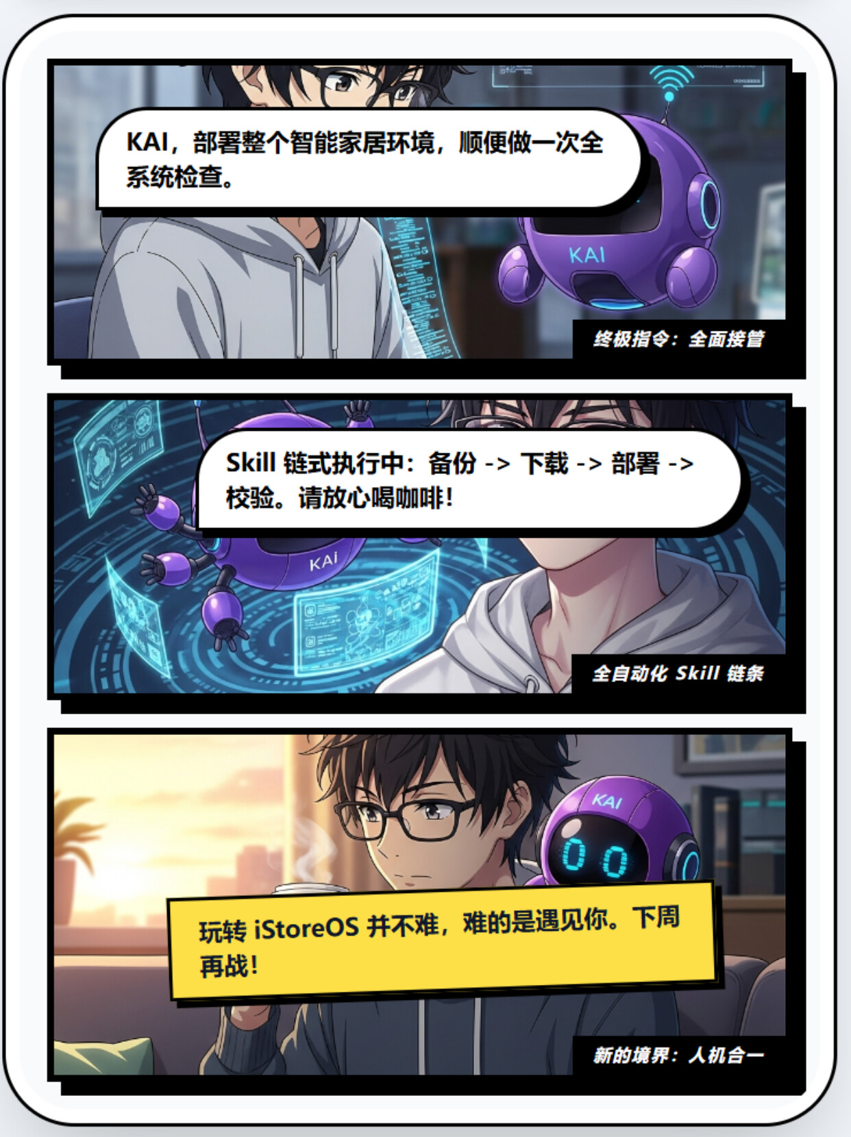 这是最实用的功能。你想部署个复杂环境,不用一步步敲命令。告诉KAI一声,它自动执行 “备份 → 下载 → 部署 → 校验” 这一整套流程。你就在旁边喝咖啡,等它提示“成功”就行。