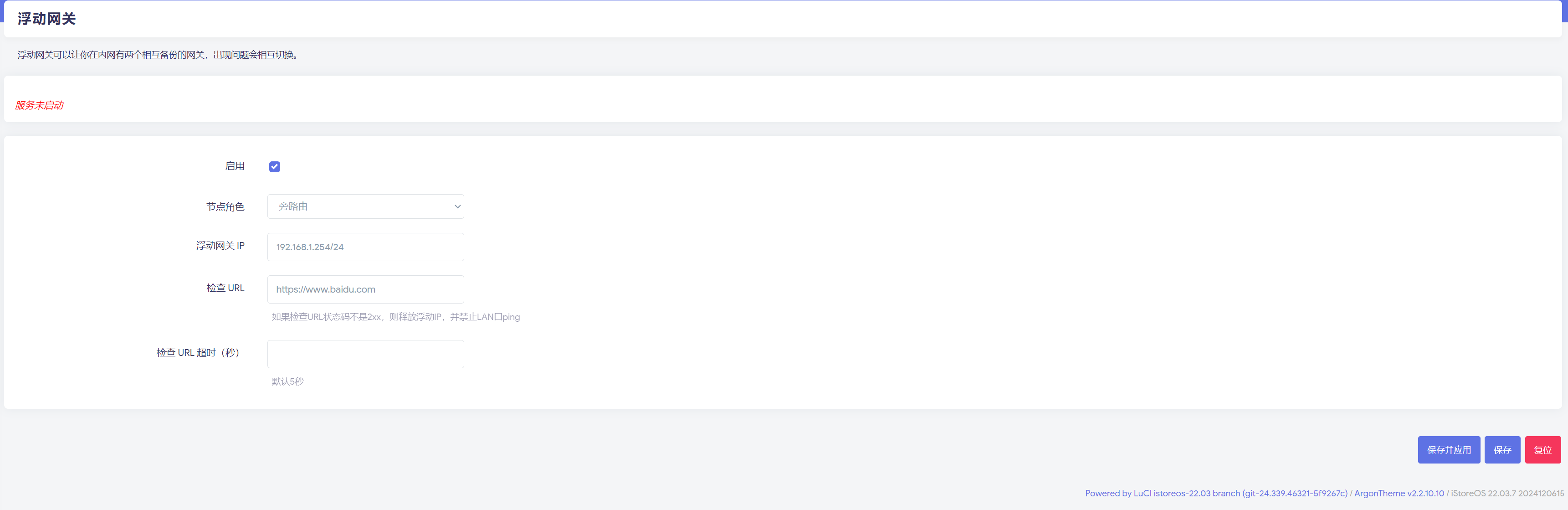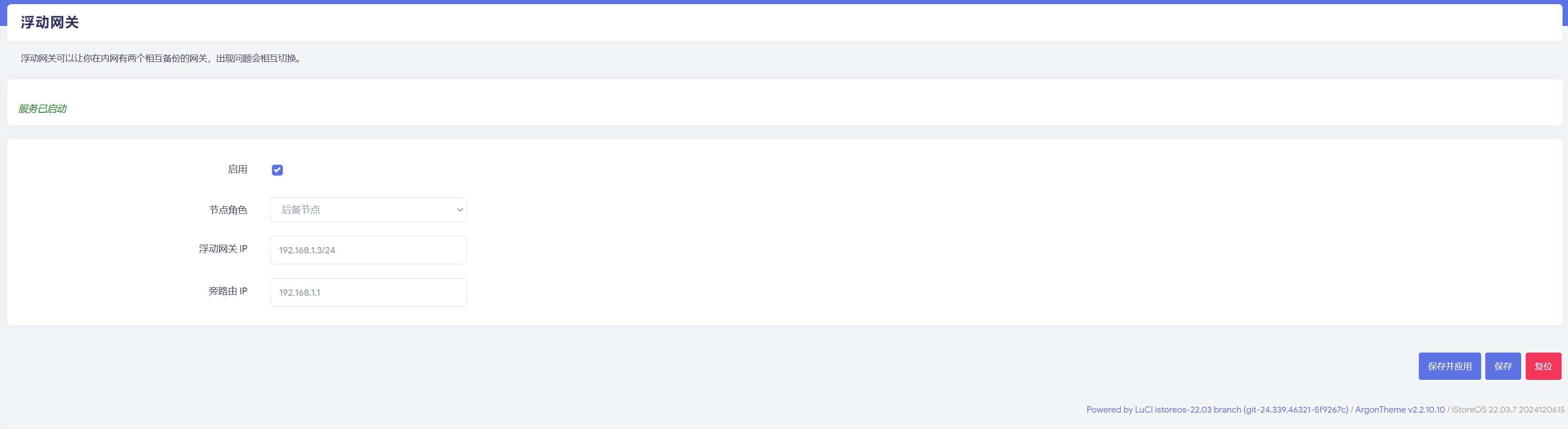 浮动网关在旁路由无法启动