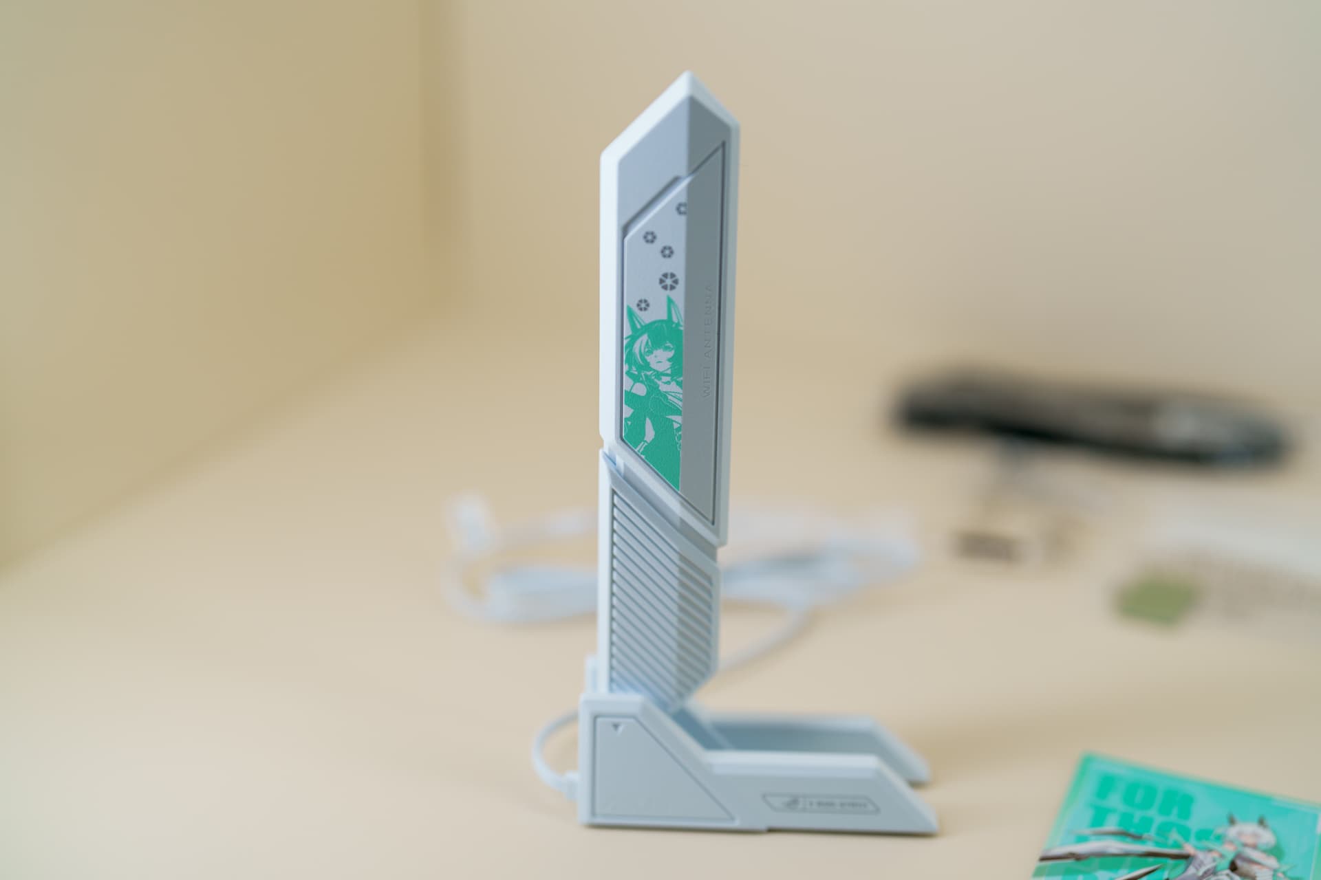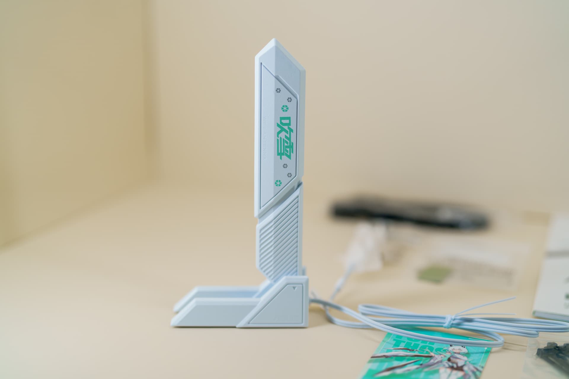 除了常规的 SATA 数据线、产品说明书、质保卡之外,还附赠了专属定制的吹雪风格 WiFi7 易拆式天线,纯白外观印有雪武战姬剪影,与主板外观完美契合。