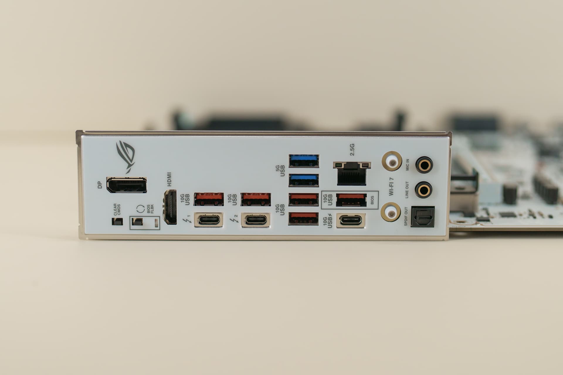 背部 I/O 接口方面,ROG Z890 吹雪S做到了旗舰级的满配规格,双 个雷电 4 Type-C 接口,支持 40Gbps 的双向超高带宽,既能外接高速固态、扩展坞等高性能外设,为内容创作与高速扩展提供了充足的空间。除此之外,接口还包含了多个 USB 3.2 Gen2 10Gbps Type-A/Type-C 接口、USB 2.0 接口,满足键鼠、手柄等各类外设的接入需求。