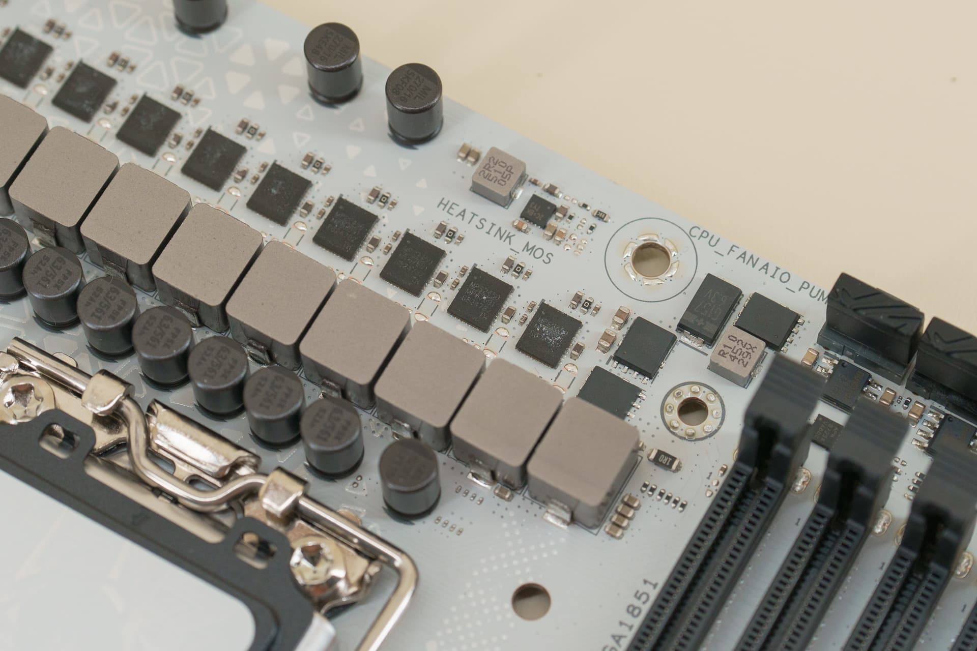 搭配80A的Dr.Mos和高品质电感、电容,配合 8 层 PCB 设计,大幅提升了电气性能与供电稳定性,不仅能轻松驾驭酷睿 Ultra 9 285K 、Ultra 7 270K Plus等旗舰处理器的满负载运行,还为 CPU 与 NPU 超频预留了充足的空间。