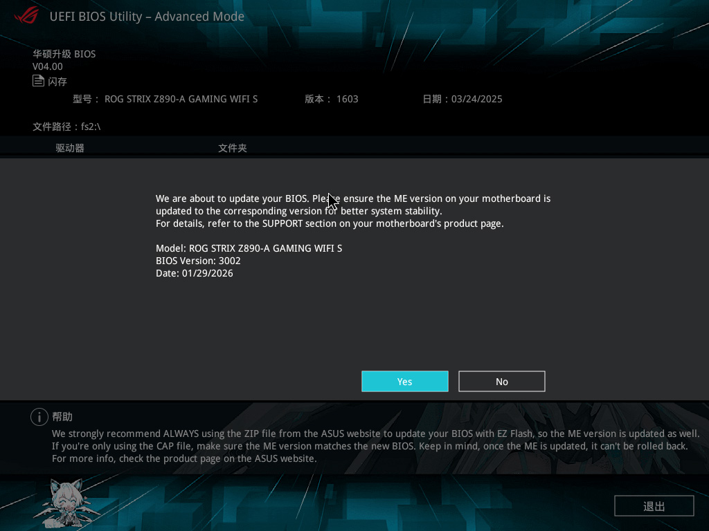 由于是前期上市的型号,我们需要更新BIOS才能支持Arrow Lake Refresh的Ultra 200S Plus处理器。