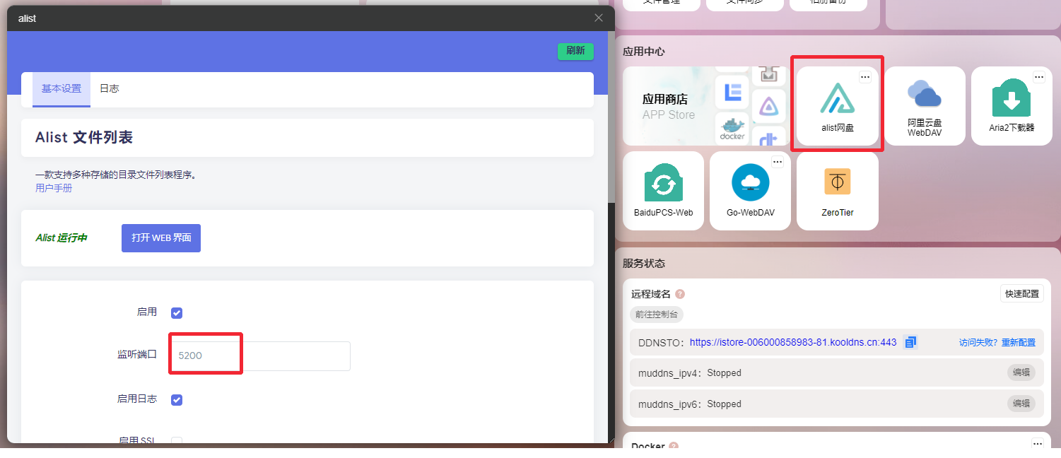 轻nas操作截面 alist 启动使用默认端口号5244,实际已修改,所以打不开