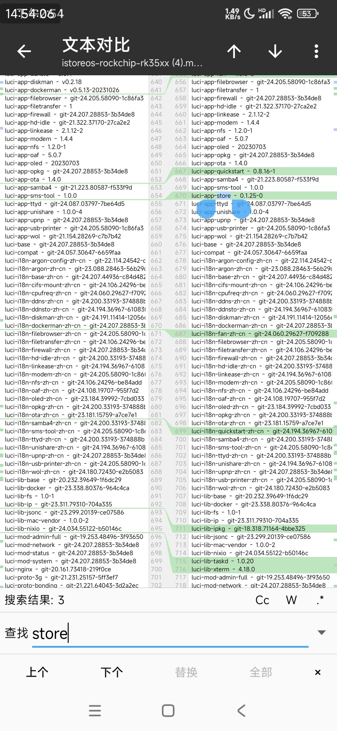 缺少quickstart和store应用商店插件,quickstart只有一个quickstart依赖其他包都没有了,首页和网络向导,网口配置都没了,10月份28号的时候编译还有这些依赖和插件的。很奇怪到11月份的时候编译就没了。左边是这个月编译的,右边是10月份编译的,你们上游仓库改了某些东西吗?