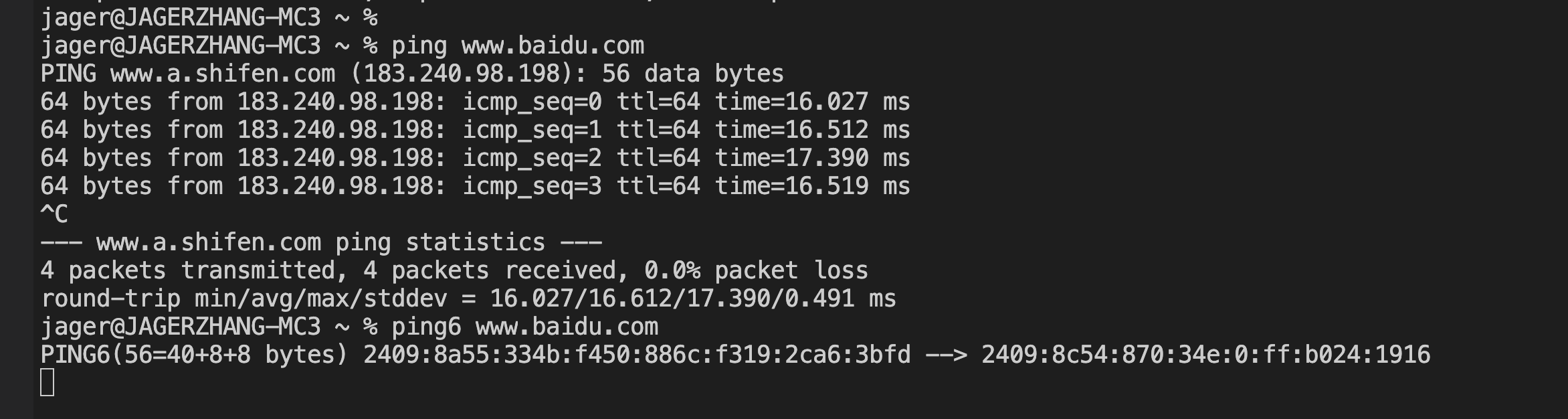 从macbook上能通ipv4,但无法ping6通公网ipv6地址:
