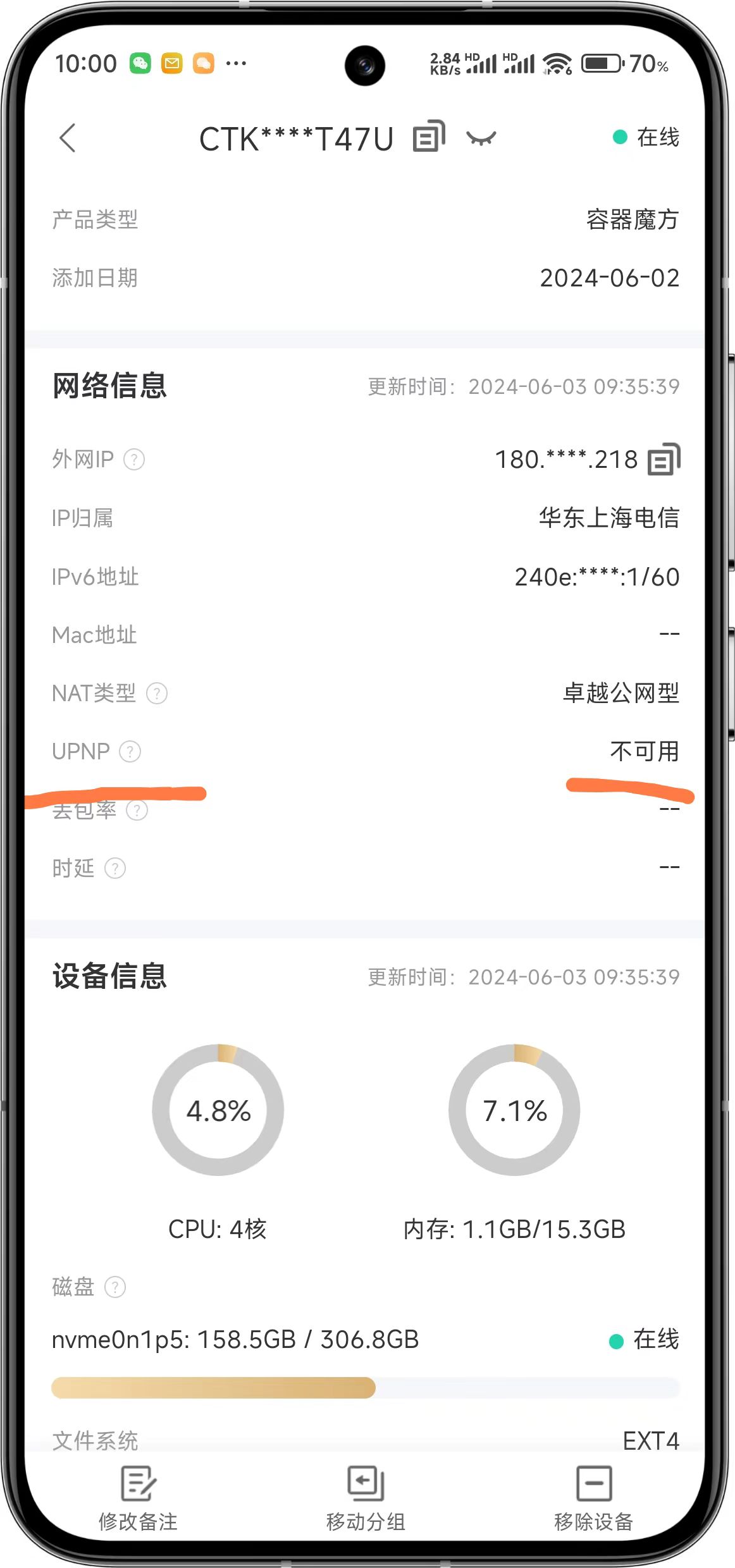 A:通过iStore安装的网心云容器魔方,通过观察UPNP开关一直为不可用的状态,但是在后台“启动 UPnP 与 NAT-PMP 服务”,已经是开启的状态,请问是开启之后还需要做什么操作才能实现网心云容器魔方的upnp可用吗?还是说Docker方式部署无法使用upnp?谢谢