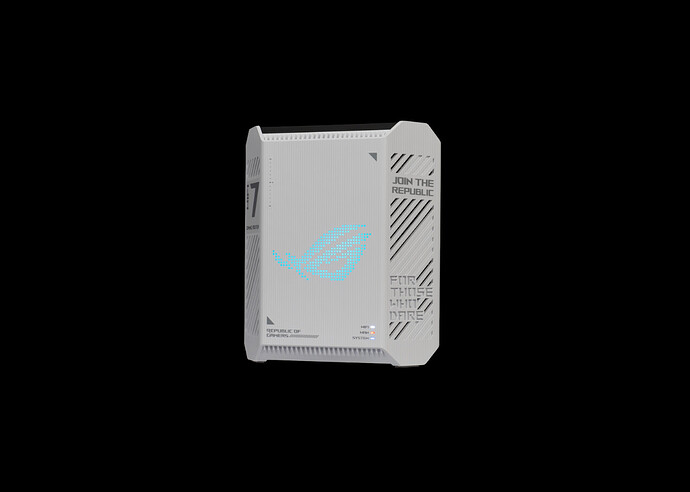 ▲ROG 魔盒 Air 给人的第一印象就是"精致"。 不同于传统路由器的扁平或外置天线设计,它采用了立式机箱造型,纯白机身搭配标志性的 ROG 信仰之眼 Logo,放在桌面上更像是一件电竞外设艺术品。