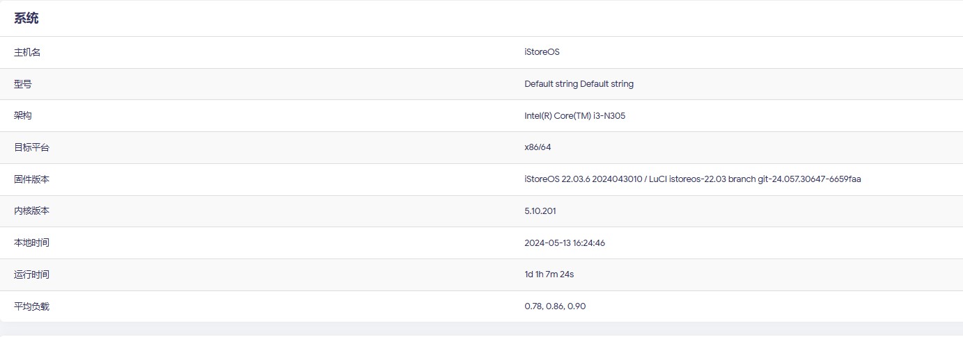 B:固件版本:iStoreOS 22.03.6 2024043010 / LuCI istoreos-22.03 branch git-24.057.30647-6659faa