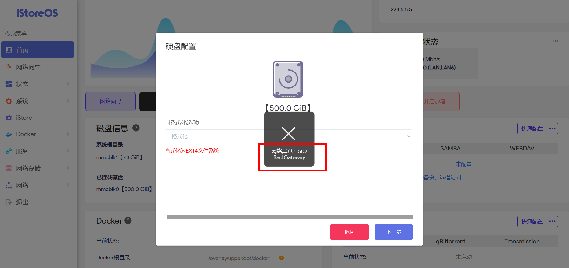格式化TF卡,提示:网络异常,502 Bad Gateway