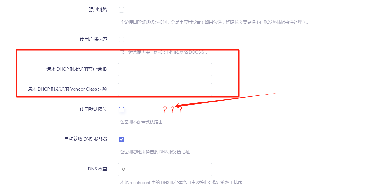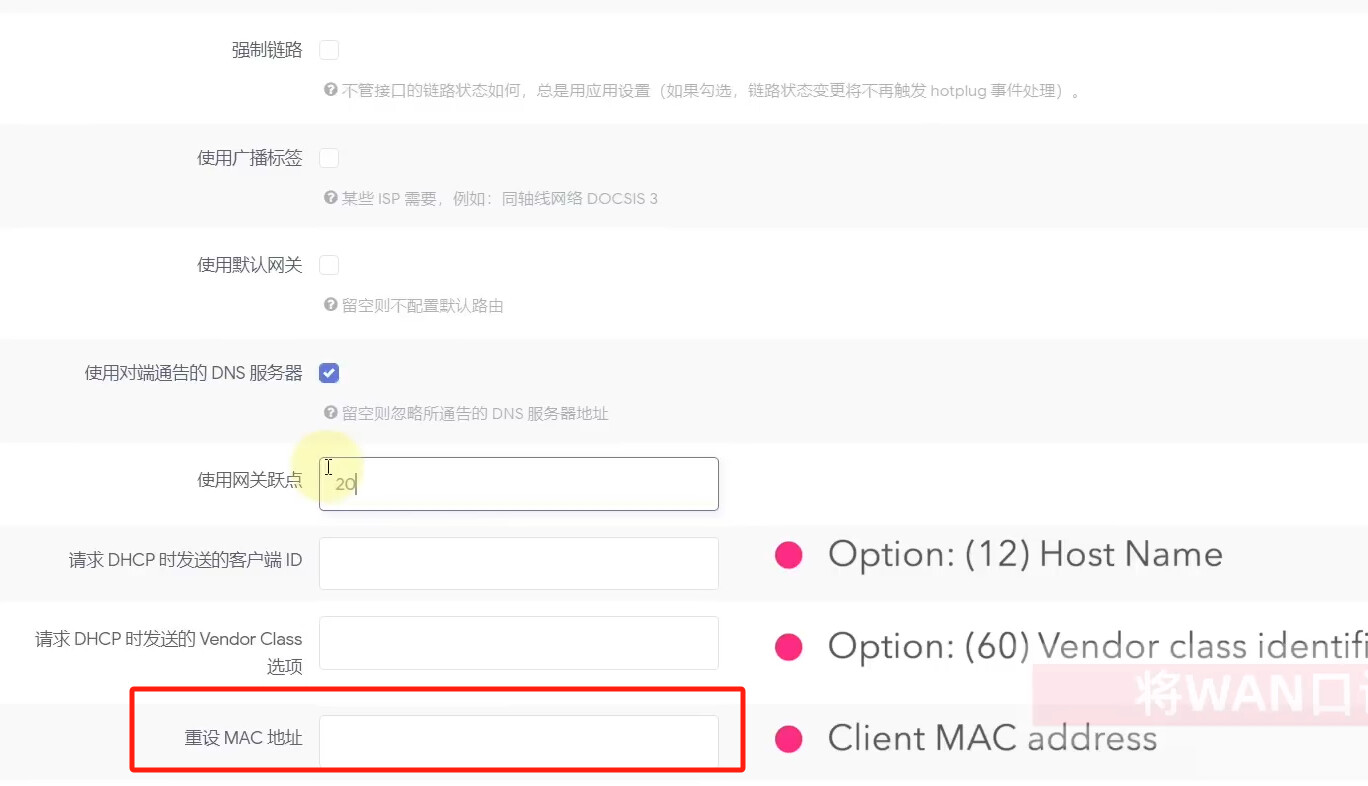图一为别人的固件,设置网口类型为DHCP客户端时的选项。
