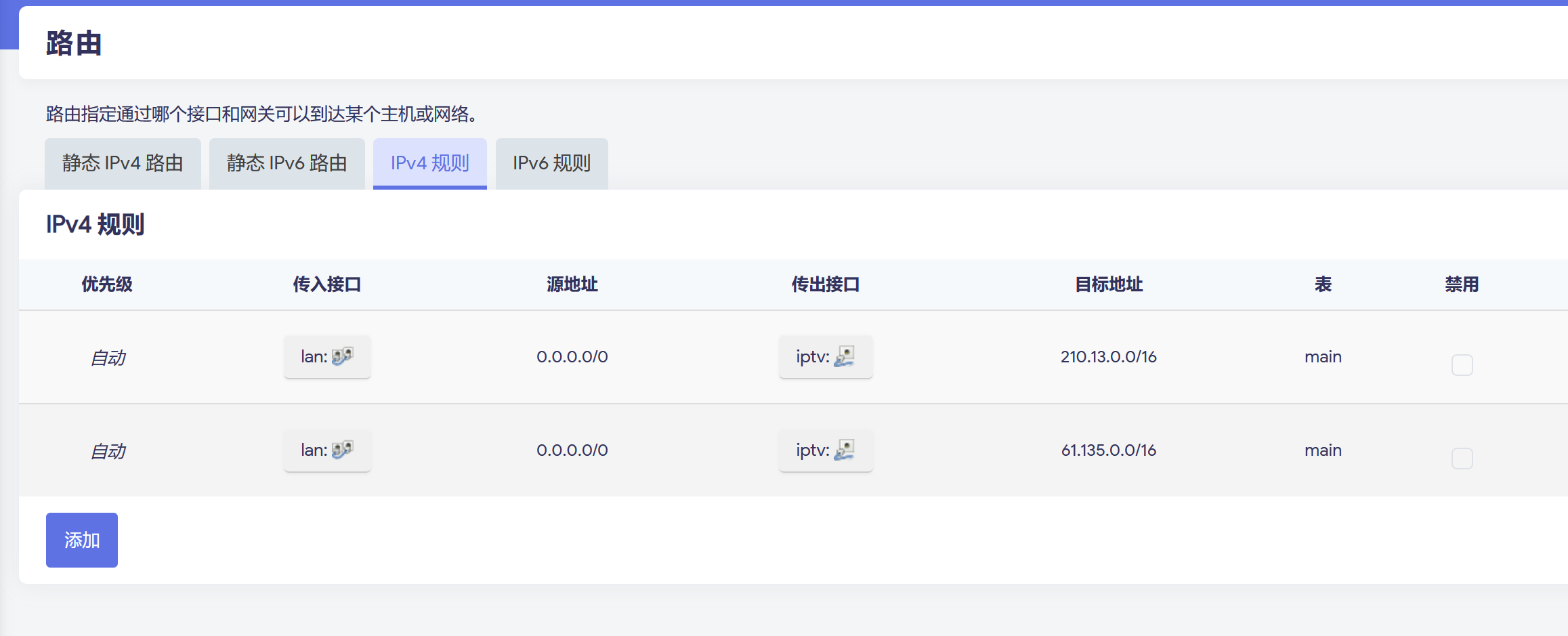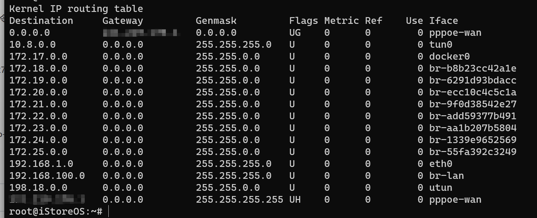 A:静态路由不生效。在界面,网络-路由,配置静态路由和IPV4规则,使用命令route查看未生效