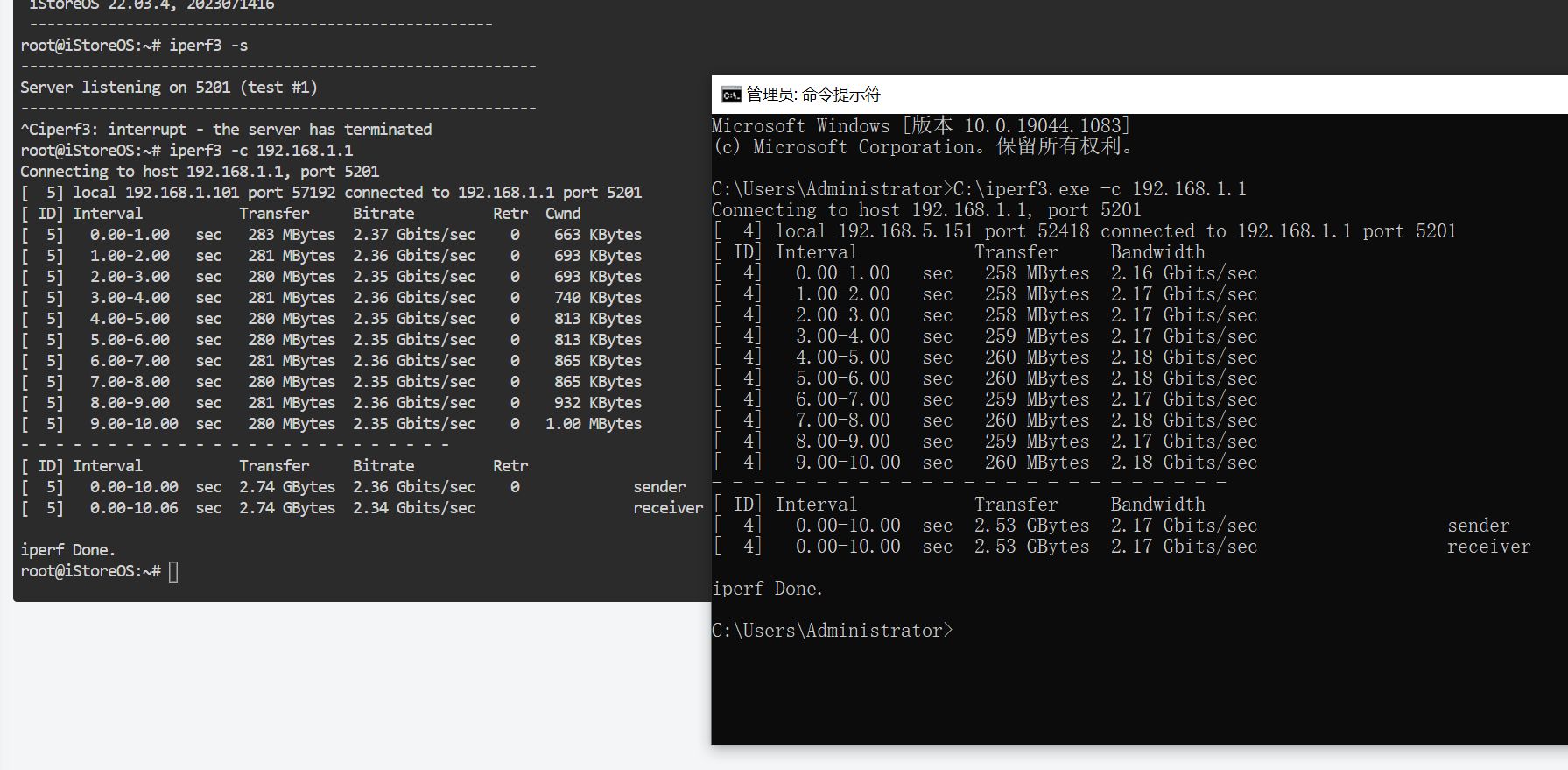 (1) 具体问题:内网速度不达标。上游路由A也是X86 I5-7500 iStoreOS 22.03.4 2023071416。用iperf3测试。从下游路由到上游路由速度2.37G,达标。电脑到下游路由iperf3 2.34G 也达标。。但是电脑到上游主路由 2.17G。速度损失了不少。。这是为啥?
