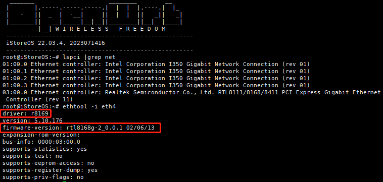 A:2023071416版固件中,使用RTL8168网卡,系统会默认使用r8169的驱动,造成无法连接。我搜索了网上,也有很多Linux系统出现这个问题的,解决方法是替换网卡驱动。希望能在固件中尽快解决这个问题。