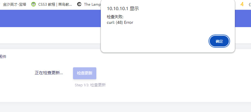 A:检查和更新固件时提示 curl: (48) Error!