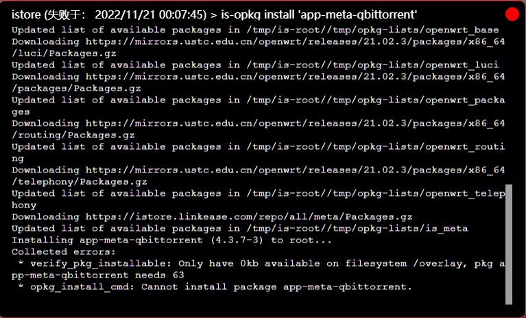 istore (失败于: 2022/11/21 00:14:08) > is-opkg install ‘app-meta-qbittorrent’