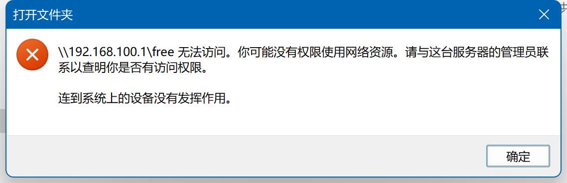 设置Samba网络共享后,用windows11电脑访问时提示如下图: