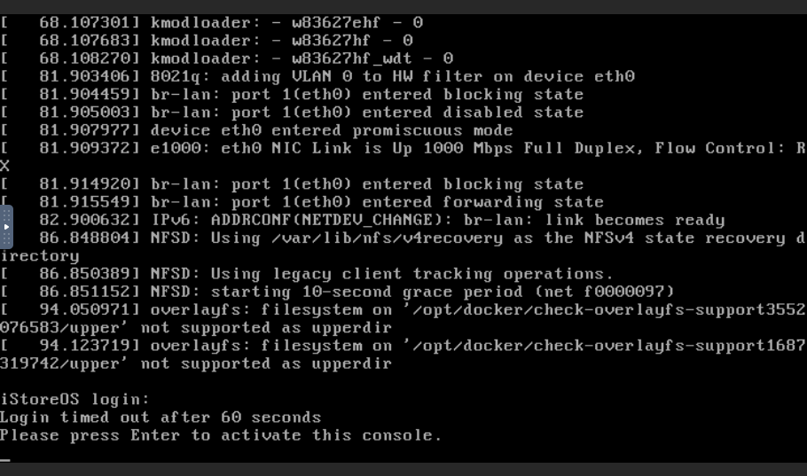 使用群晖虚拟机安装固件时报以下错误并且不能正常开机