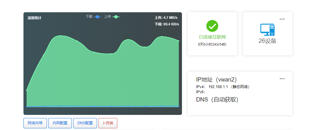 多线多拨后,首页面的带宽流量统计不准,他好像只统计了某个接口,而不是多线多拨 后所有线路流量的汇总